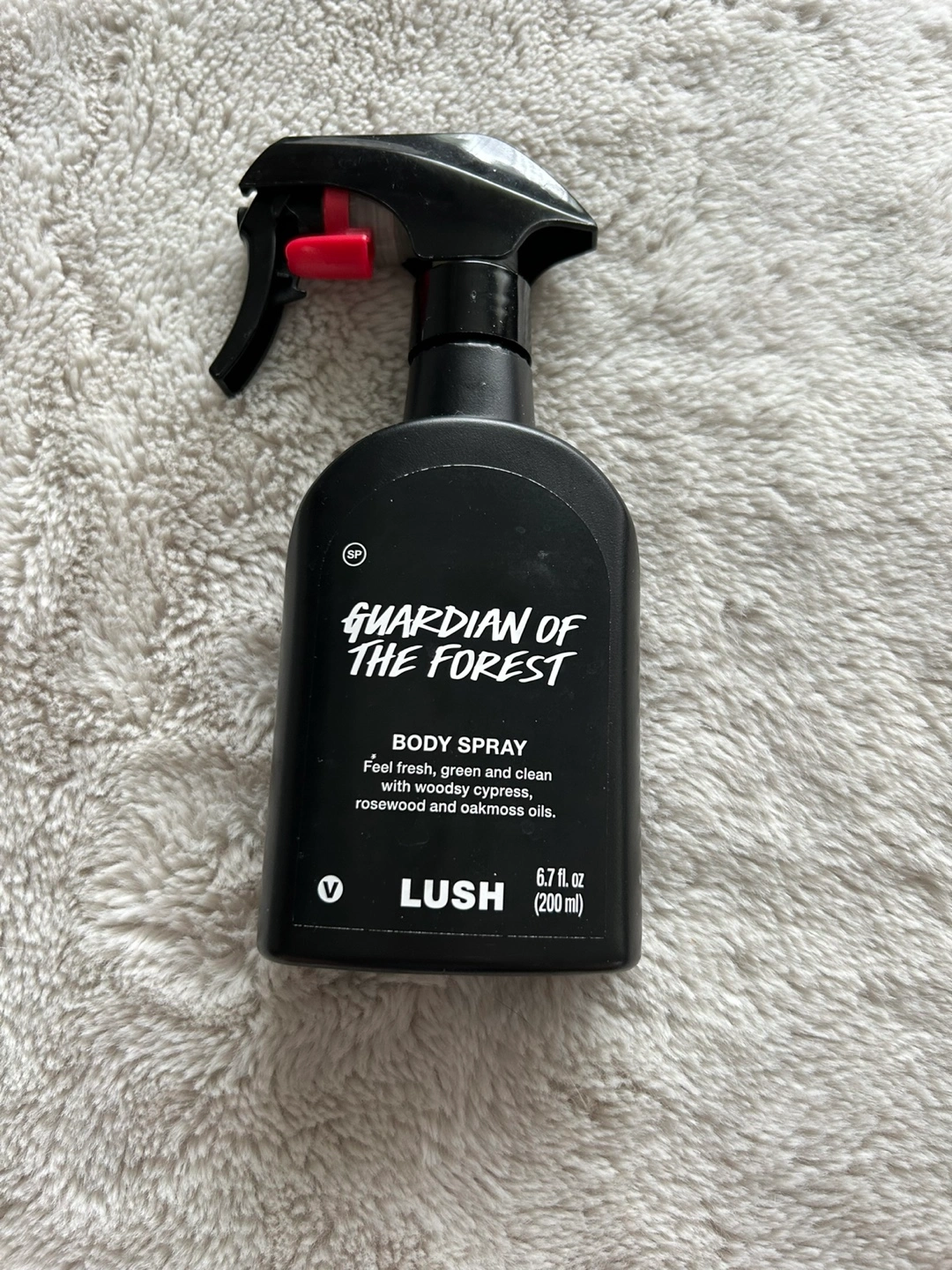 A body spray in a black bottle, featuring a spray nozzle. A fresh, green, and clean scent. Great for daily use as part of your routine, it brings a refreshing feeling to your day. 2/3 bottle left