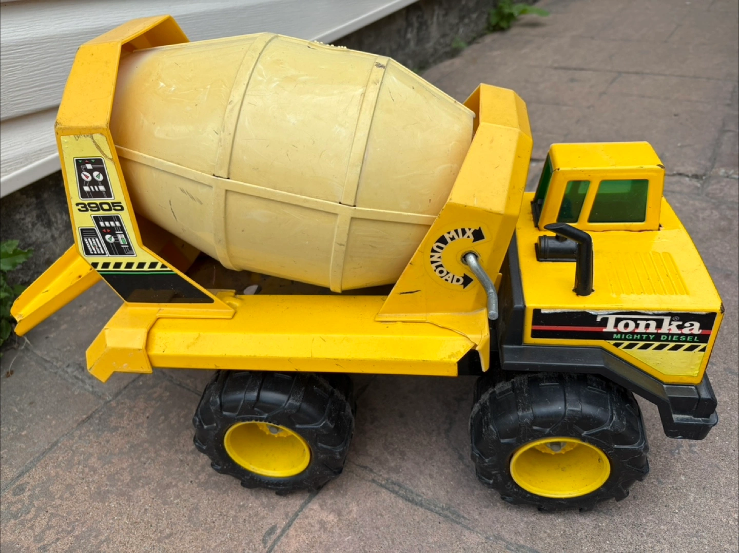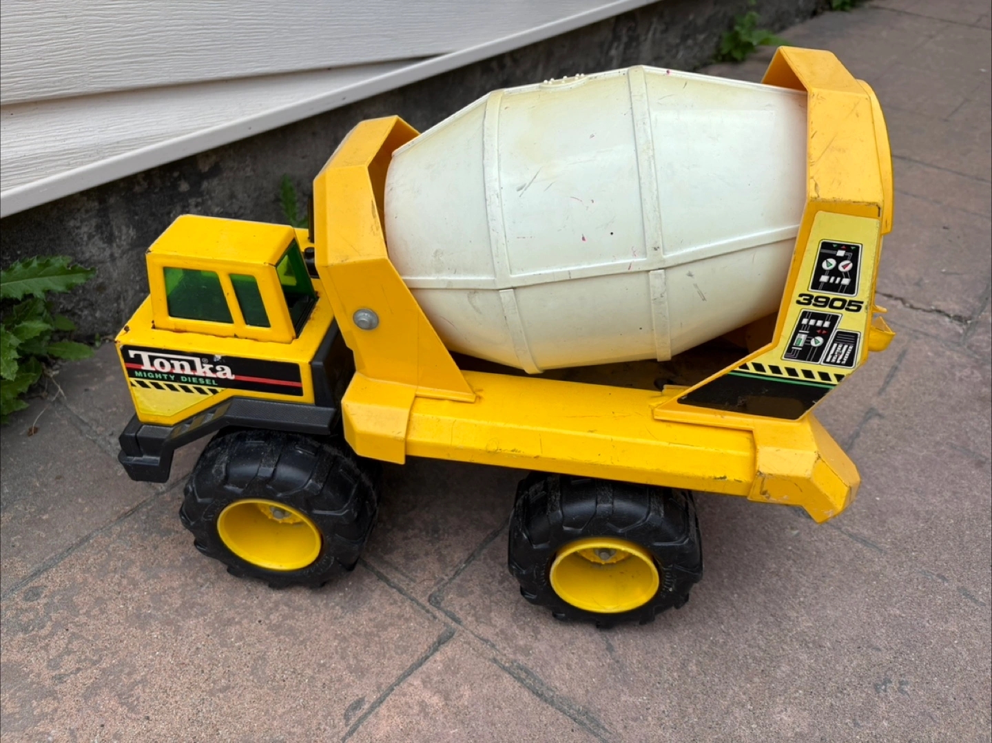 941Cement Truck The truck features large black tires and yellow rims. It would be fun for your child to use their imagination and create their own construction site.