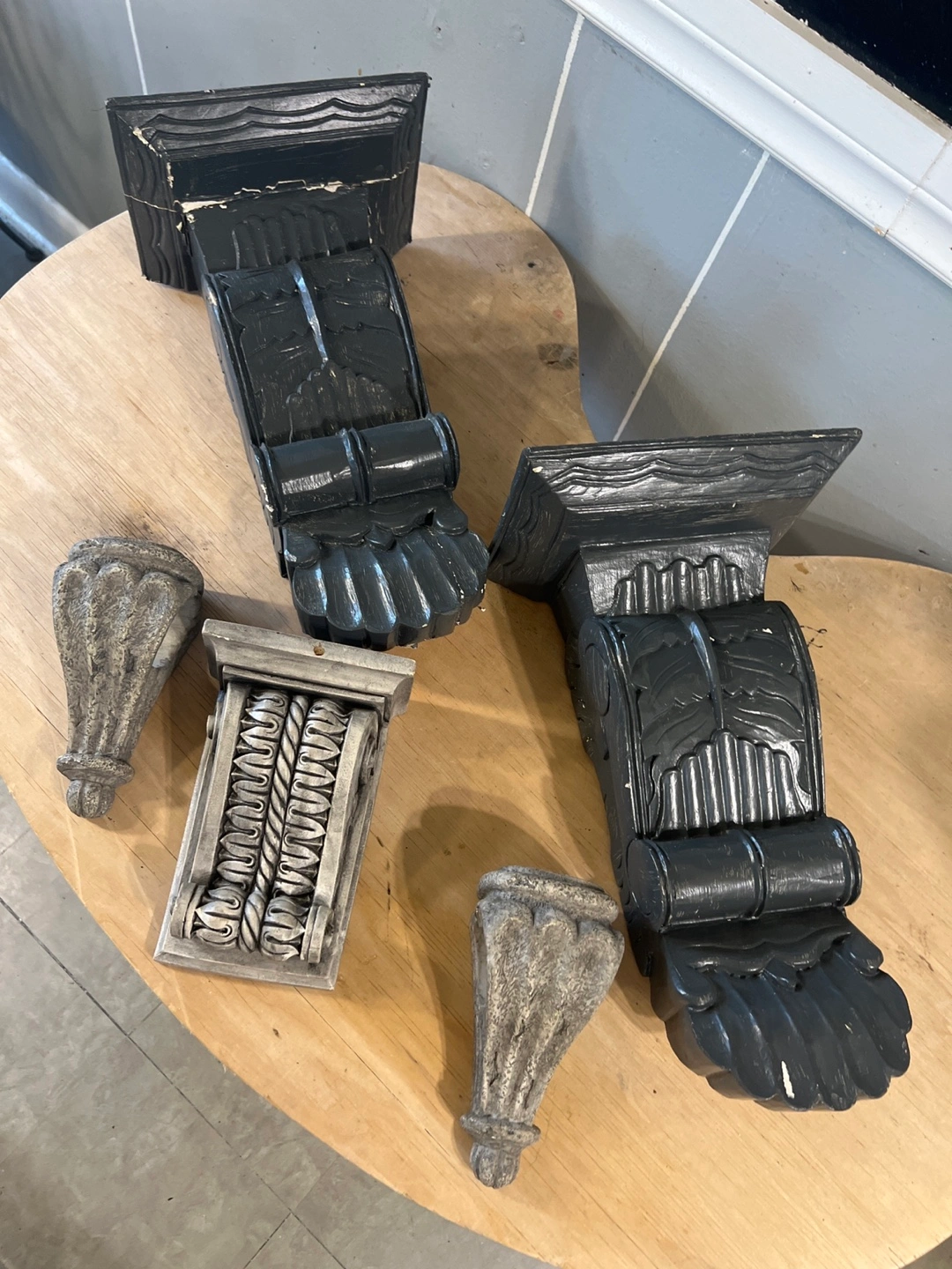 1000+I'm selling decorative trim pieces. Comes with a long, rectangular piece and several decorative corbels. These pieces would be a perfect addition to your home to add a little old-world charm to the living room.