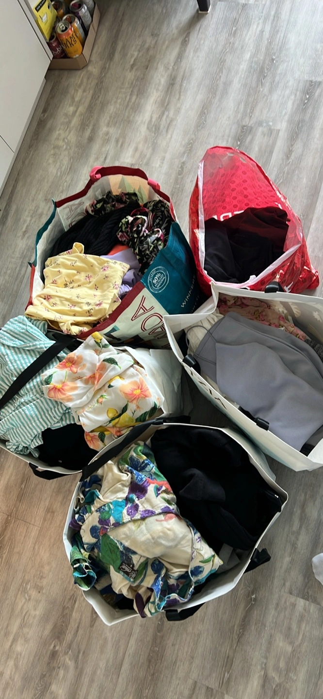 All type of brands and sizes. I hosted a closet swap and have so many clothes left that I wanted to donate but don’t have a car. Please pick it up and have fun with it