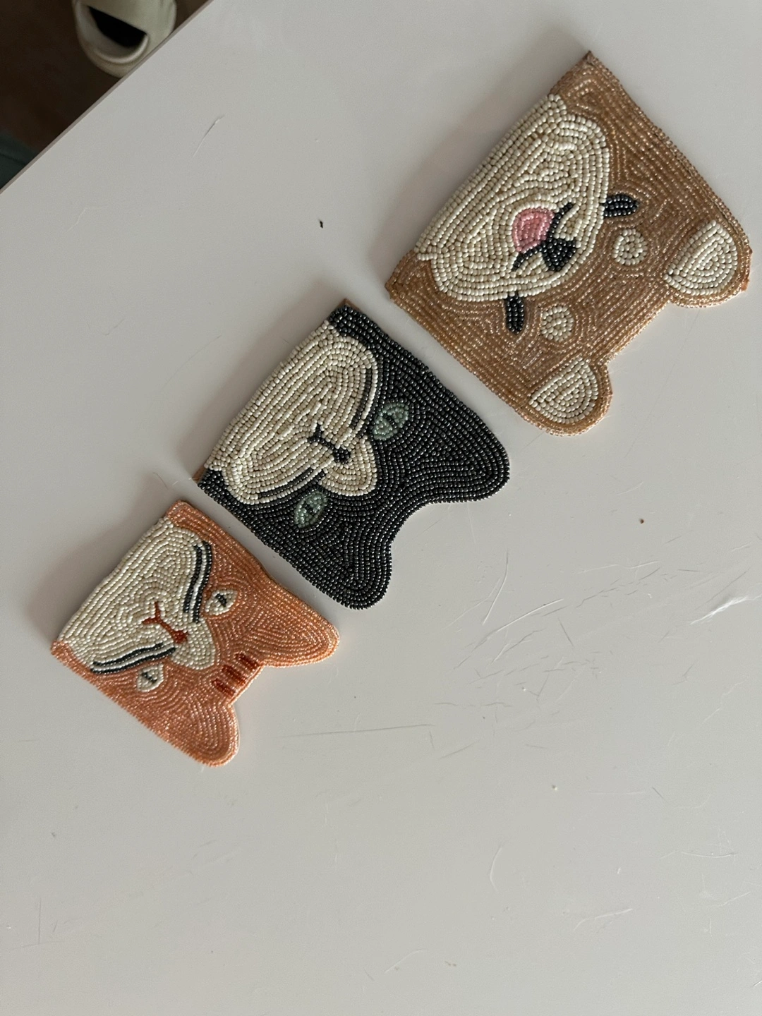 Beaded coasters. Cat face design. Variety of colors. A perfect way to add a touch of charm to your home and unwind after a long day.