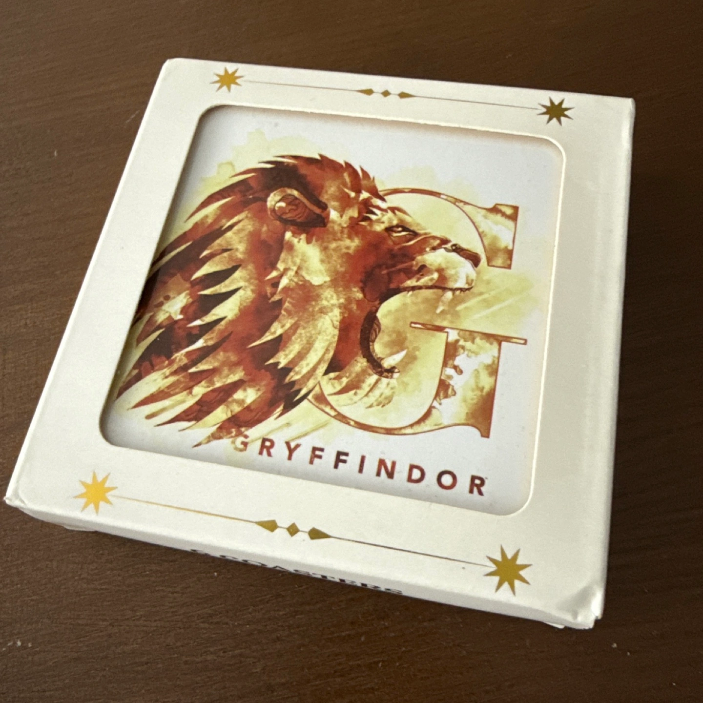 These coasters can make you think of all of your favourite magical memories while sipping your drink. The box is white, with gold accents. Contains a set of six coasters. Each with a different Harry Potter house crest.