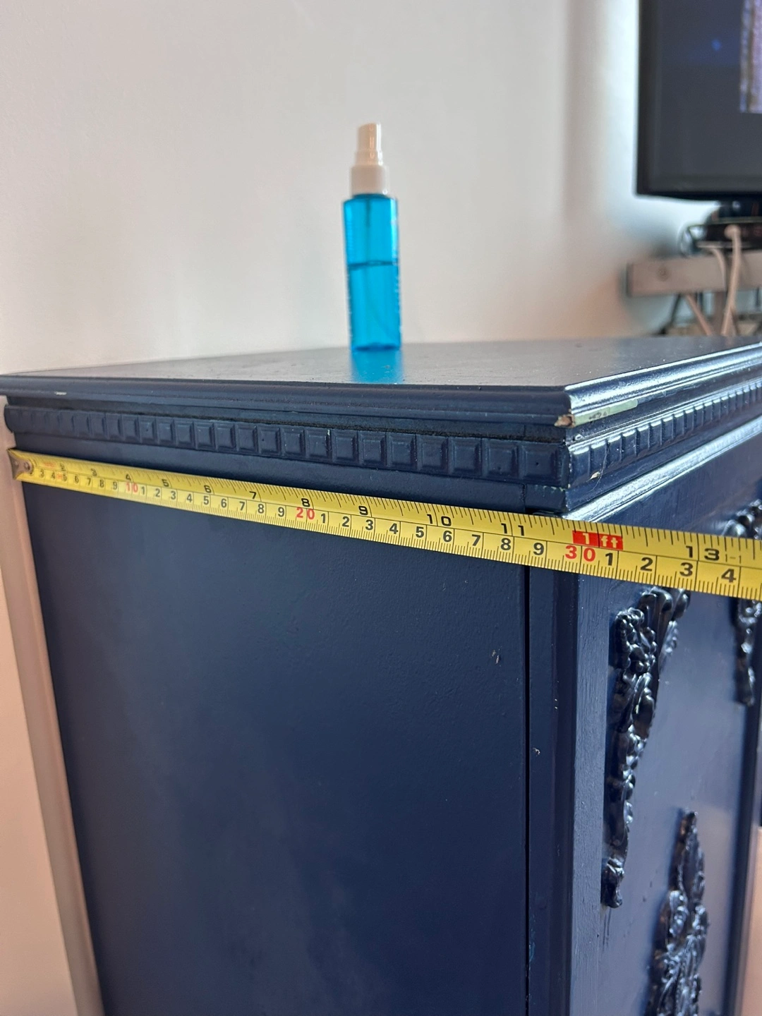 Features two shelves for storage – perfect for books, games, or tools. Some paint chips add to the rustic character. Ideal for small spaces or as an accent piece.