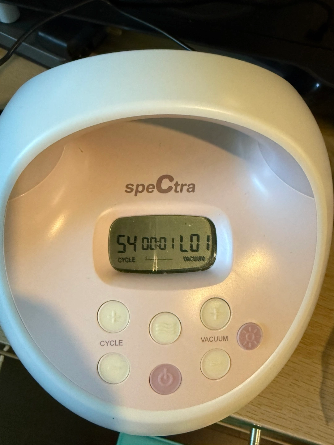 A breast pump, featuring several parts in bags. Includes the main pump with a display screen. A power button, as well as buttons to control cycle and vacuum settings. You will enjoy this amazing item.