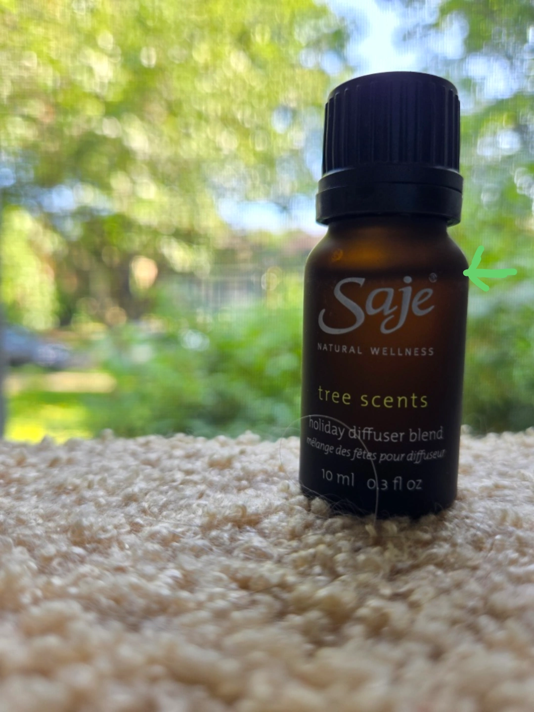 Aromatic oil blend in a small, dark glass bottle. The label suggests a tree scents blend, perfect for diffusing in your home.