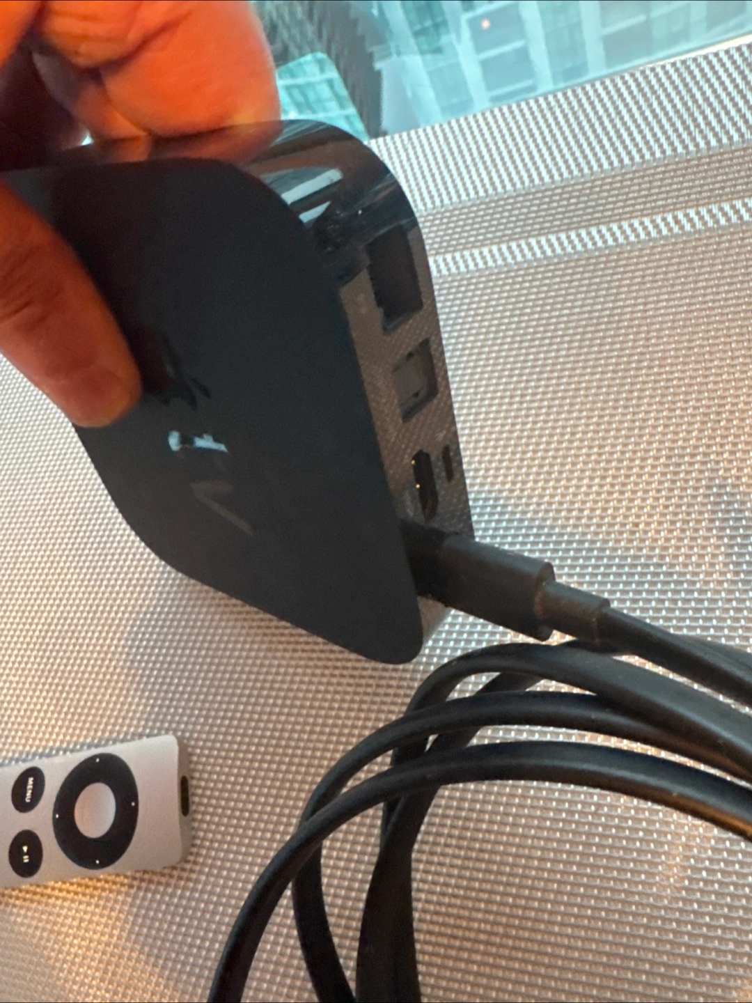 3rd Generation - A black Apple TV, remote, and power cable included. Great for relaxing movie nights. Features an aluminum remote with simple controls.