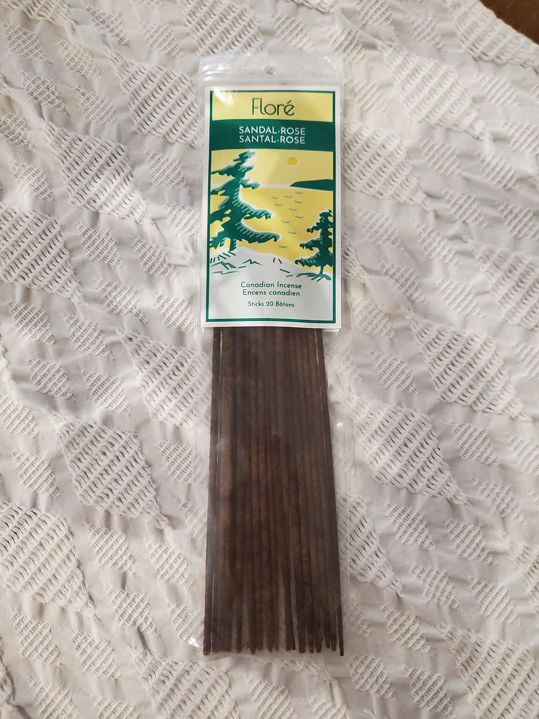 Never been opened. Contains 20 incense sticks in Sandal Rose scent. Floré Brand.