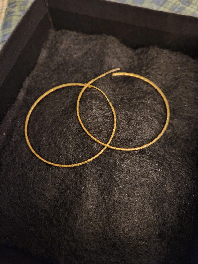 Gold played silver hoop earrings. The gold plating is textured. A beautiful addition to any wardrobe, perfect for adding elegance to a simple outfit.