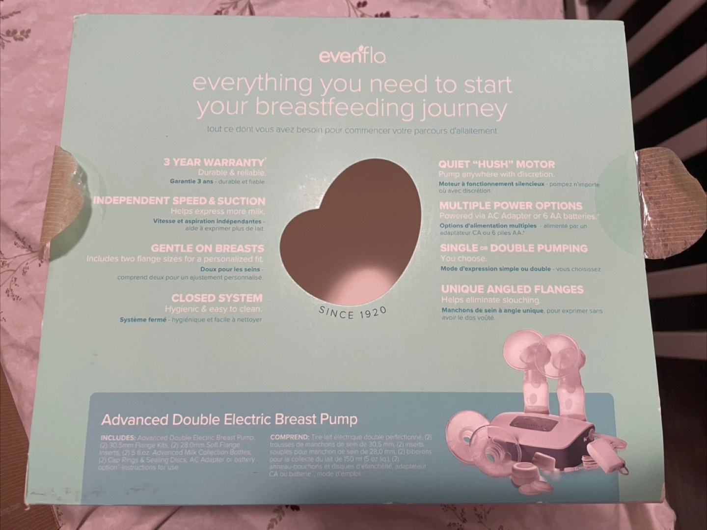 74Box contains the breast pump and its components. Item is electric. Has multiple options. This breast pump can make a mother’s life a little easier. Never used However opened box Did not use because I forgot I bought it Please contact