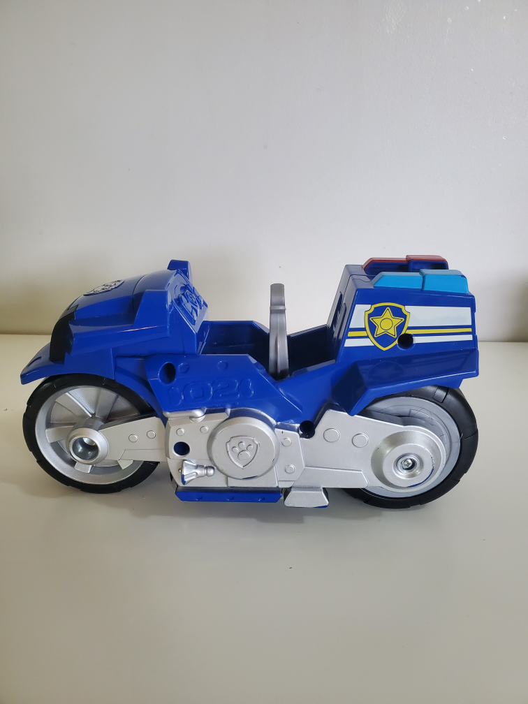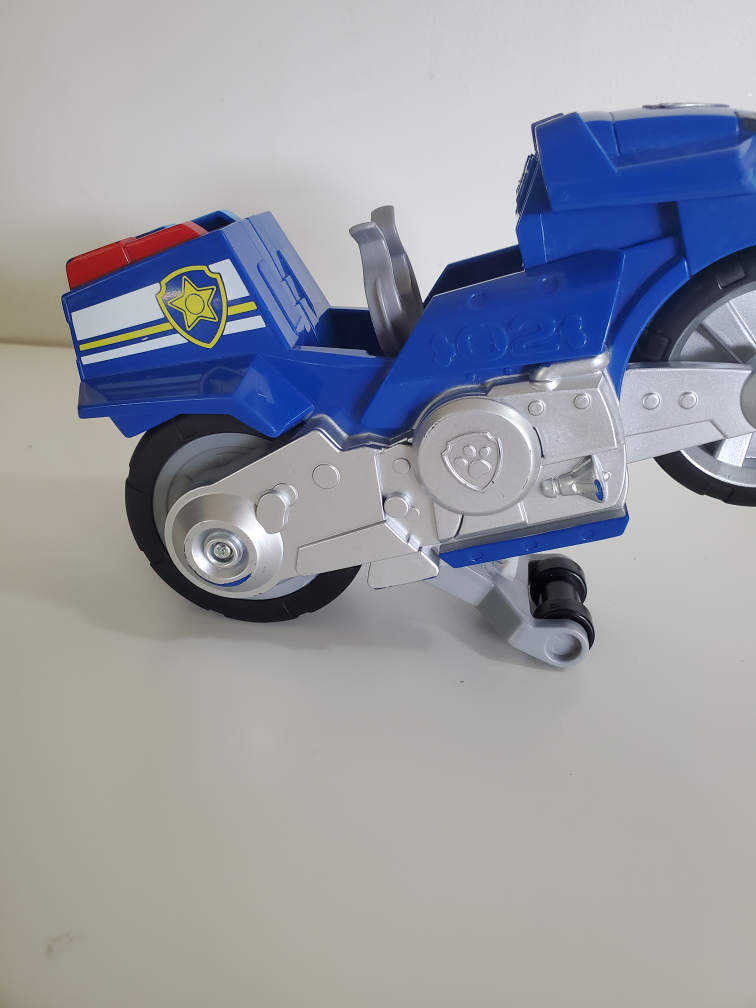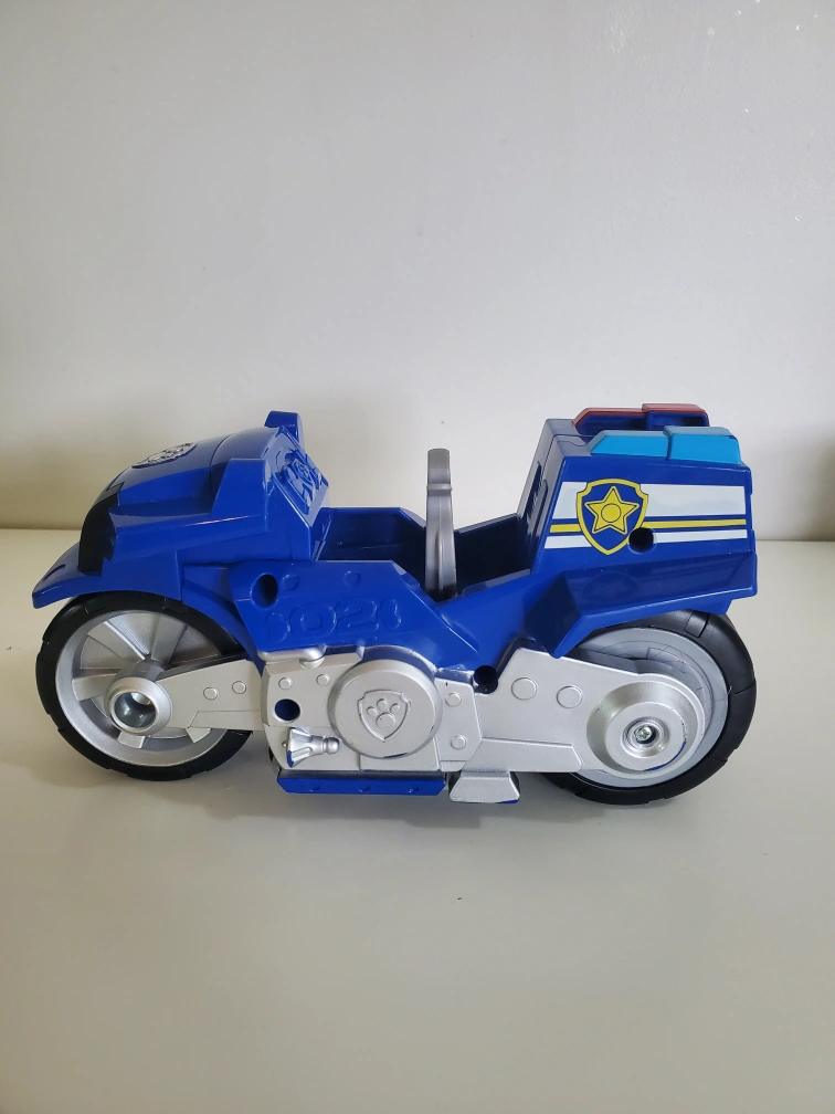Featuring a vibrant blue finish and made from durable plastic, this motorcycle is designed for playful use and enduring adventures. The pull-back action adds an interactive element, perfect for imaginative play and racing against time. With one piece included in the pack, kids can have Chase ready for action in no time.