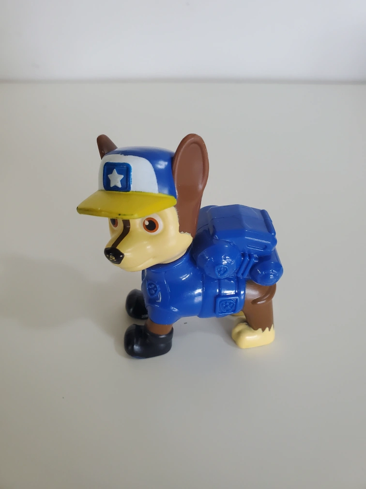 Chase figure. Features the iconic blue police uniform. Ideal for children to play with. You can put it on a shelf to add to your collection, making it a great decorative piece.