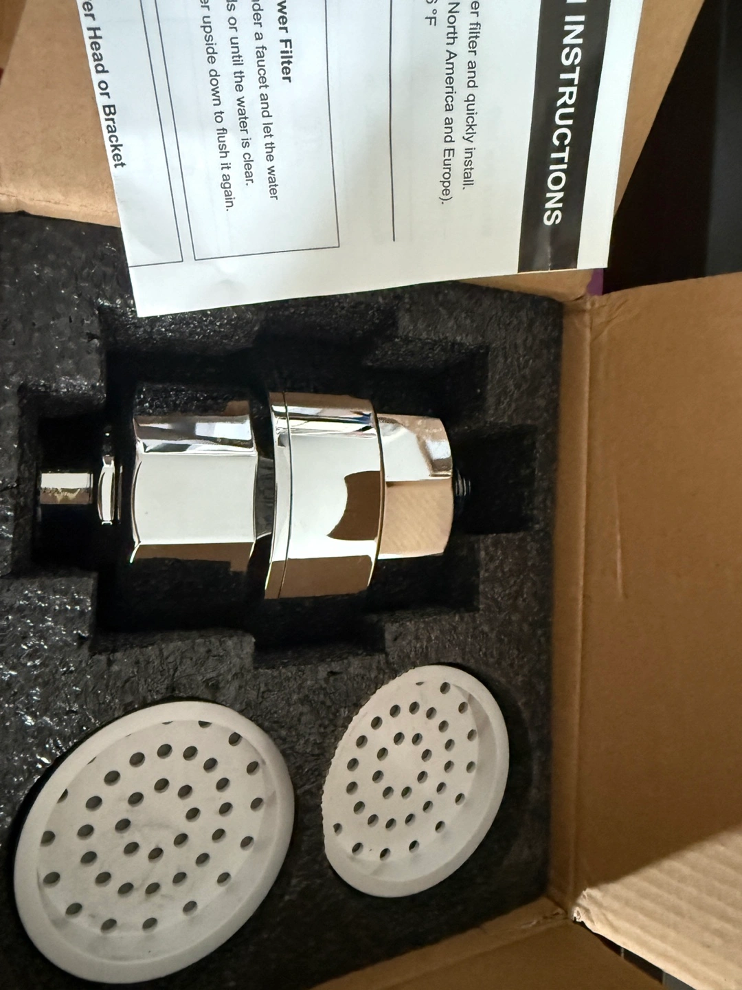 BRAND NEW, Never installed. Amazon #1 Best Seller. Shower head filter, great for filtering your shower water. Includes instructions, and spare parts. The water filter will gently purify your water.
