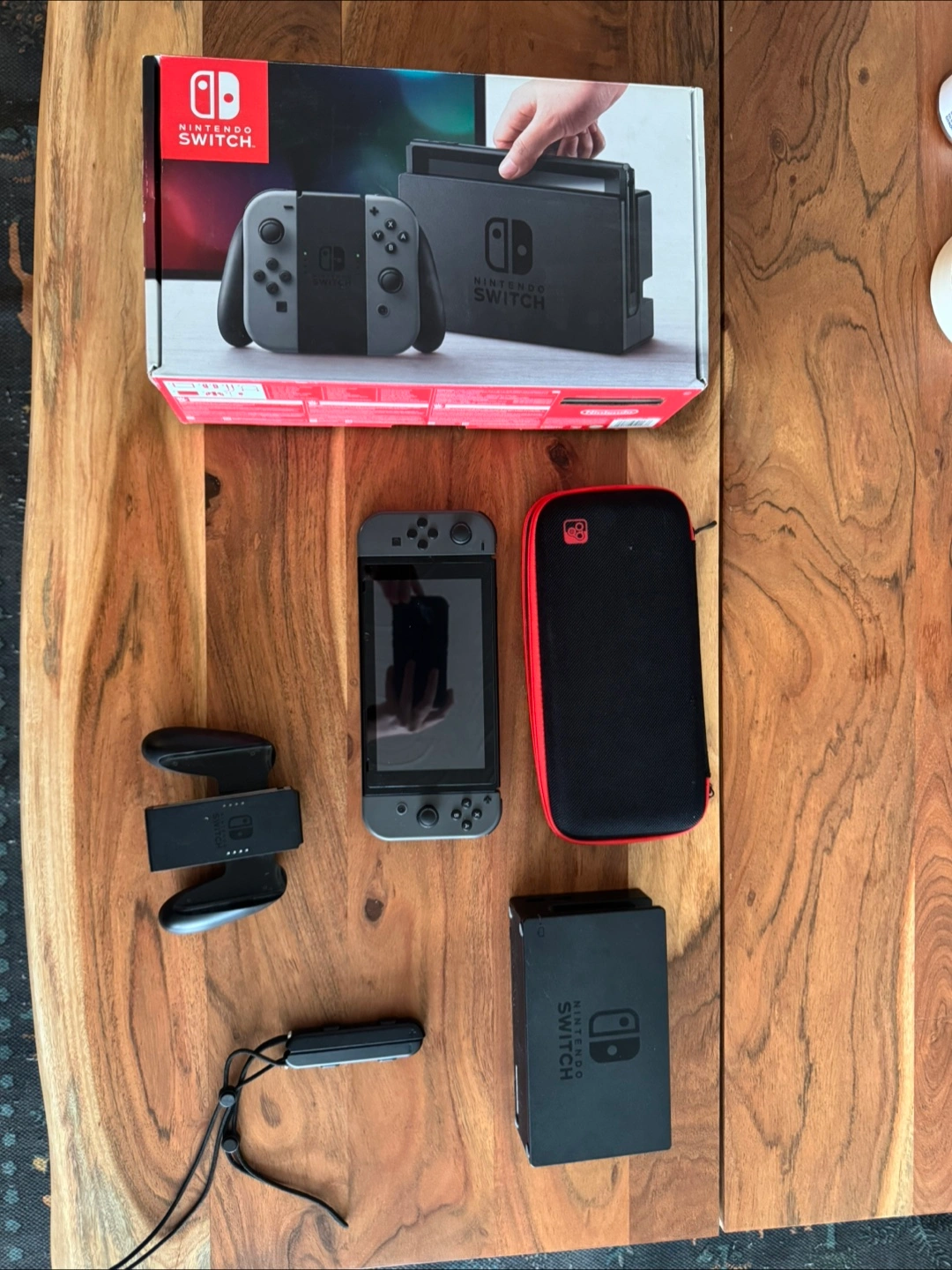 Comes with everything you need to get going! It is factory reset and my Nintendo account is removed so it is fully good to go.