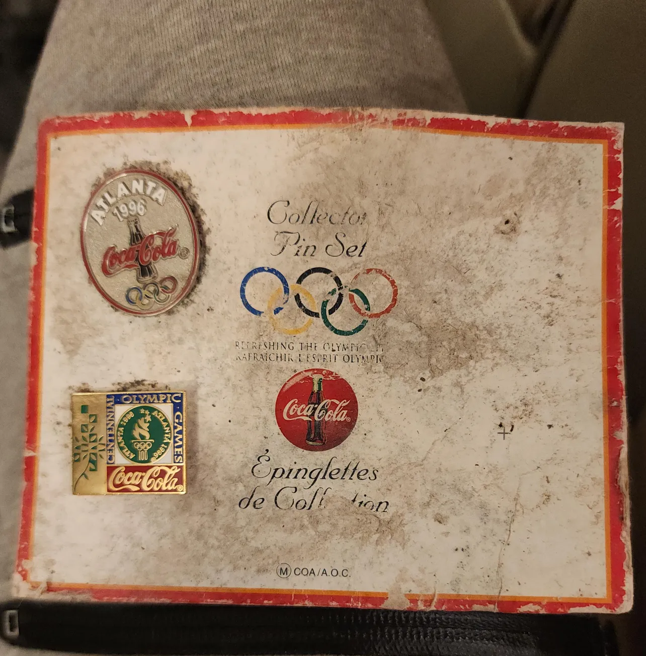 A nice coca cola collector's pin set. It would be a great addition to any collection, and to reminisce on the Olympic Games from the comfort of your home. paper is slightly damaged due to flood but pins not affected.