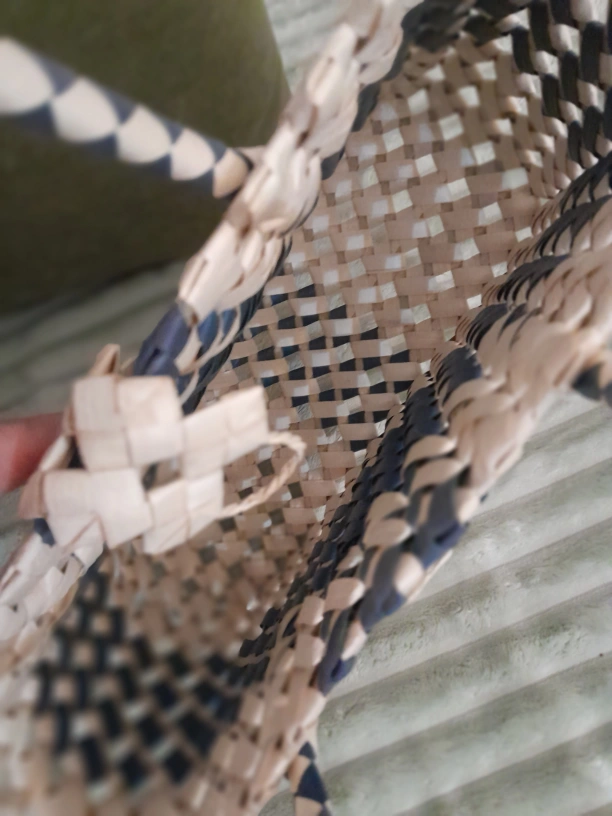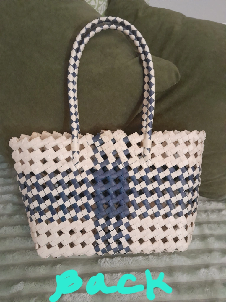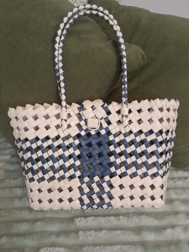 Cute summery colour green and beige pandan bag made in the Phillipines.