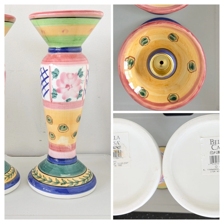 261Hand painted ceramic Bella Casa by Ganz taper candle holders including hand dipped tapers
