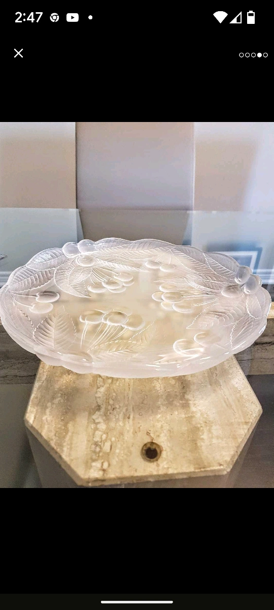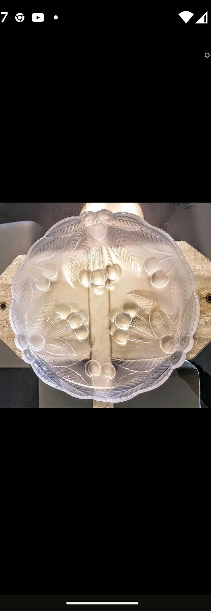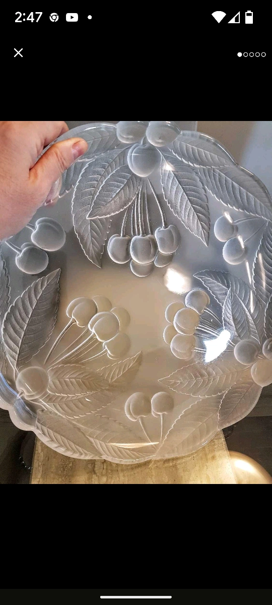 This elegant round Mikasa Crystal Platter/Serving Dish in clear and frosted glass with raised cherries and leaf design, measuring 30 cm in diameter. It is in excellent condition, no scratches or chips. Use it for dessert, display beautiful array of fruits and berries, smoked salmon fillets with cream cheese, shrimp with cocktail sauce and many many more.