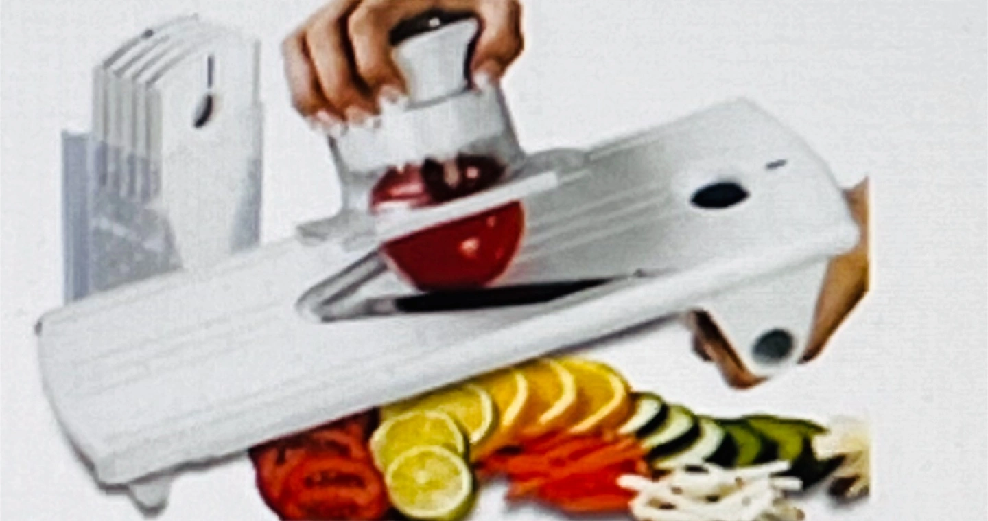 This mandolin slicer handles all sizes and shapes of foods, in smaller large quantities and quickly cuts or slices, consistent, professional, looking fruits and vegetable slices. Even tough vegetables such as potatoes are rendered helpless against a sharp blade -which quite thankfully your hand is kept clear of because the only thing you want in your salad is lettuce, tomato, and onion!