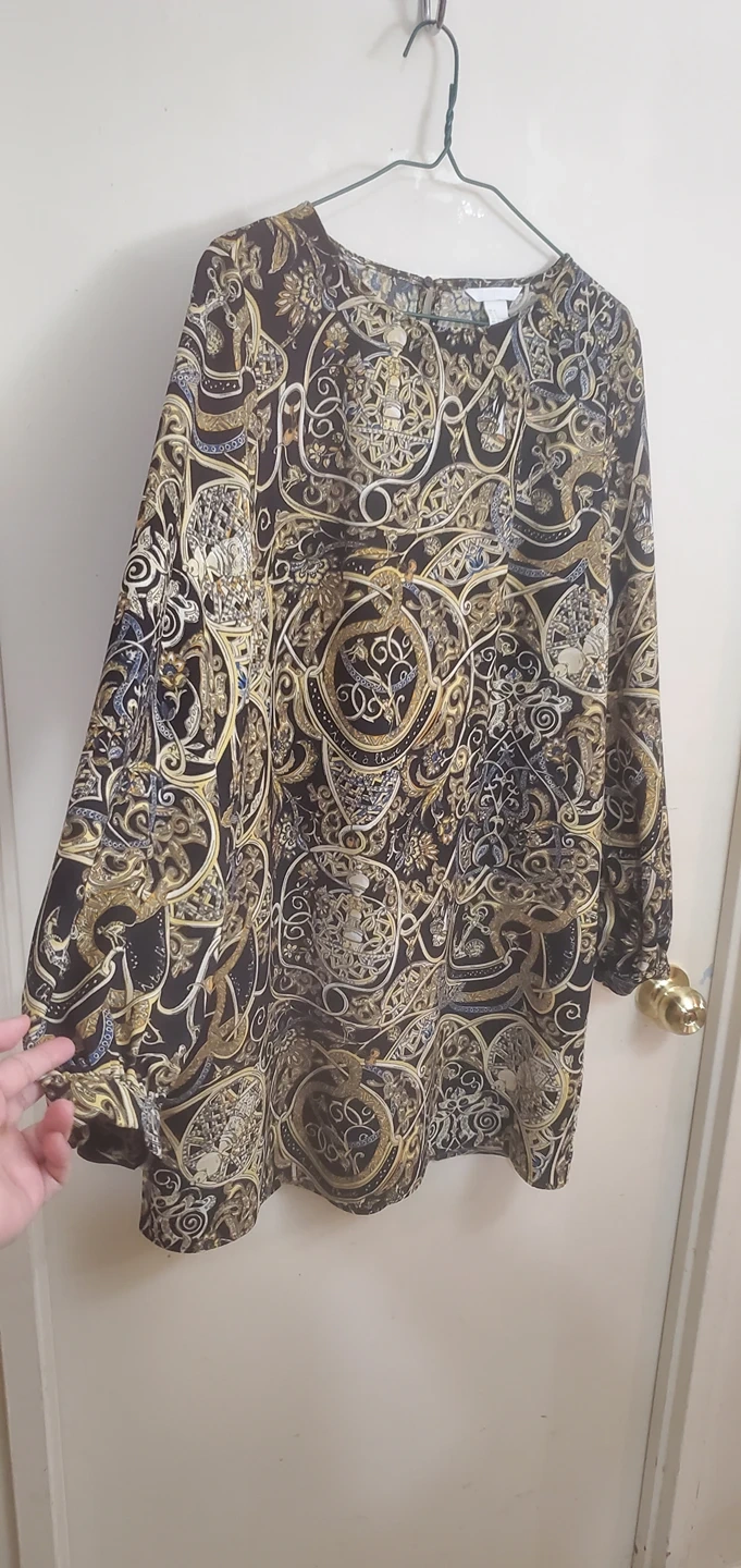 A New Dress that fits loose in the body. very comfortable of you ask me. I love it just that where I am going I am not able to wear such kind. it is made in Vietnam β€
