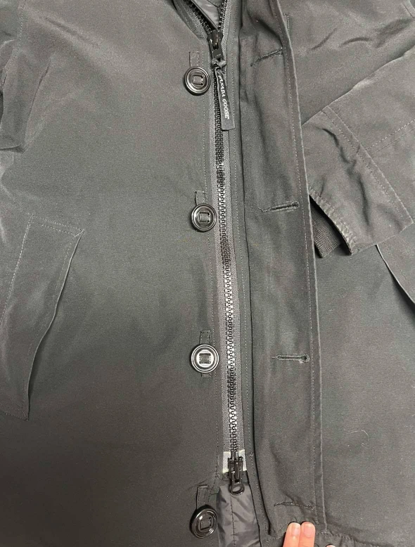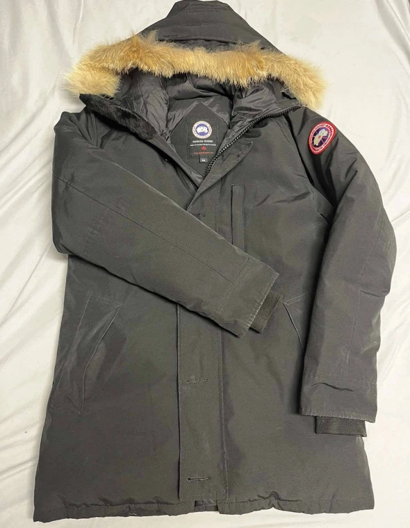 Black Canada Goose jacket with a fur-lined hood in good condition!! No damage, no stain. No smell. Used but like new.