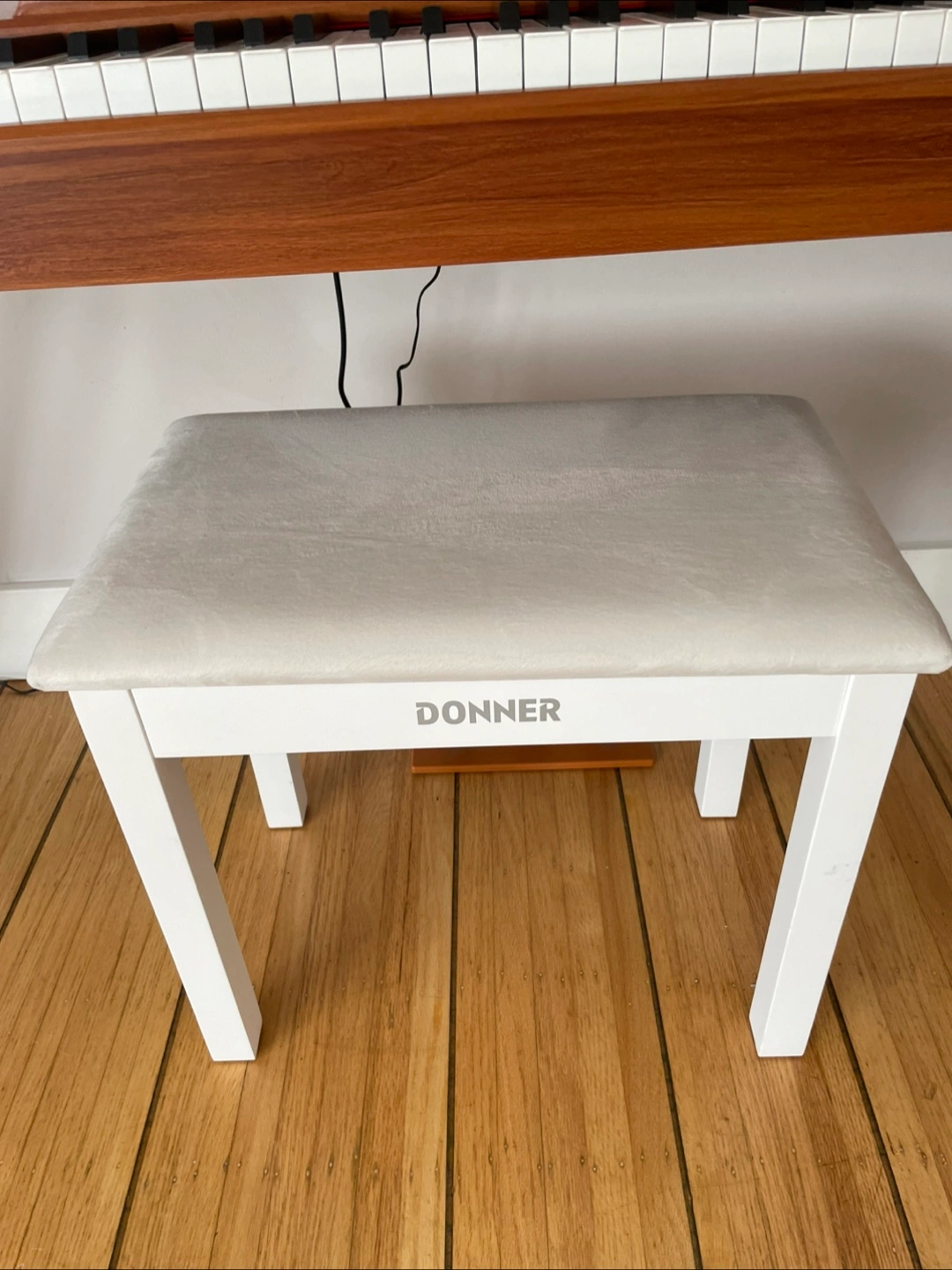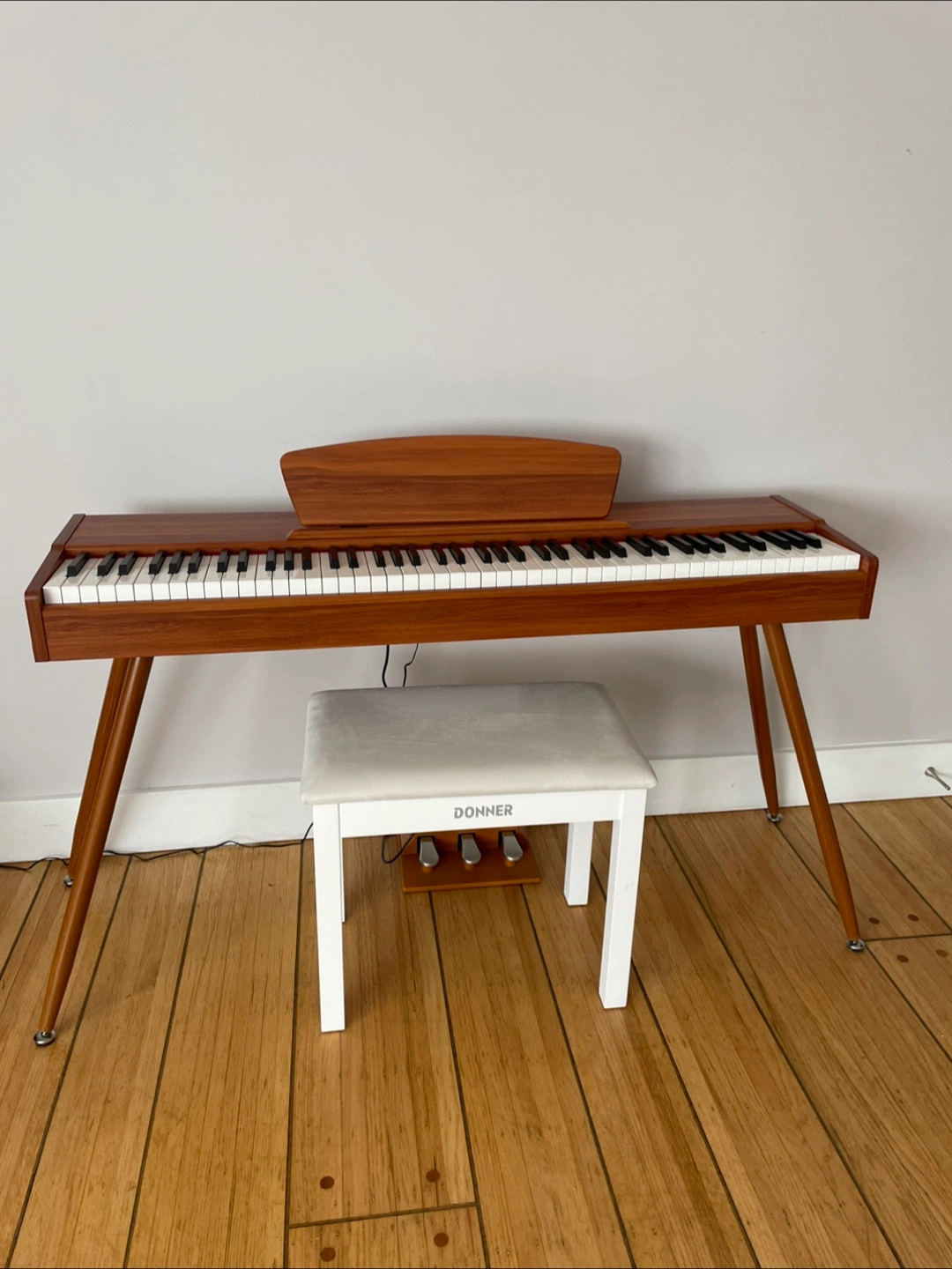 Beautiful Donner Digital Piano 88 Key Weighted Keyboard, Full-size Electric Piano, with Sheet Music Stand, Triple Pedal, Power Adapter, Supports USB-MIDI Connecting, and stunning cushioned Donner bench. I absolutely love this mid-century modern styled piano! She’s in pristine condition, just over 1 year old. I’m moving so I can’t taker her with me!