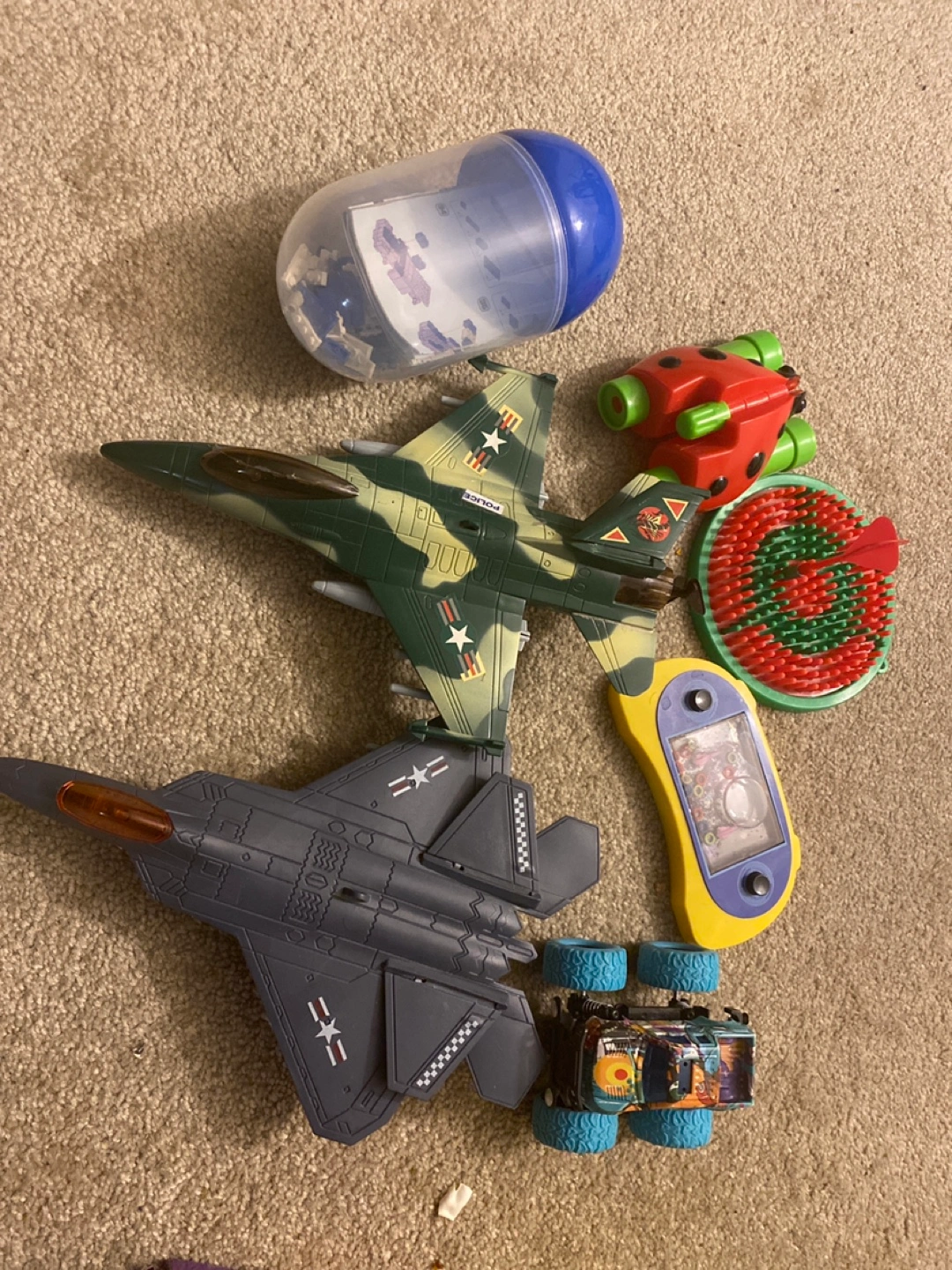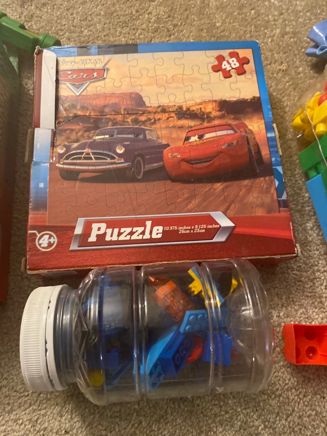 Various toys, including puzzles, cars, and more. A good way to encourage an active imagination. Also included is a bottle filled with blocks and a maze game. Individual Price is different, kindly text me for multiple or all.