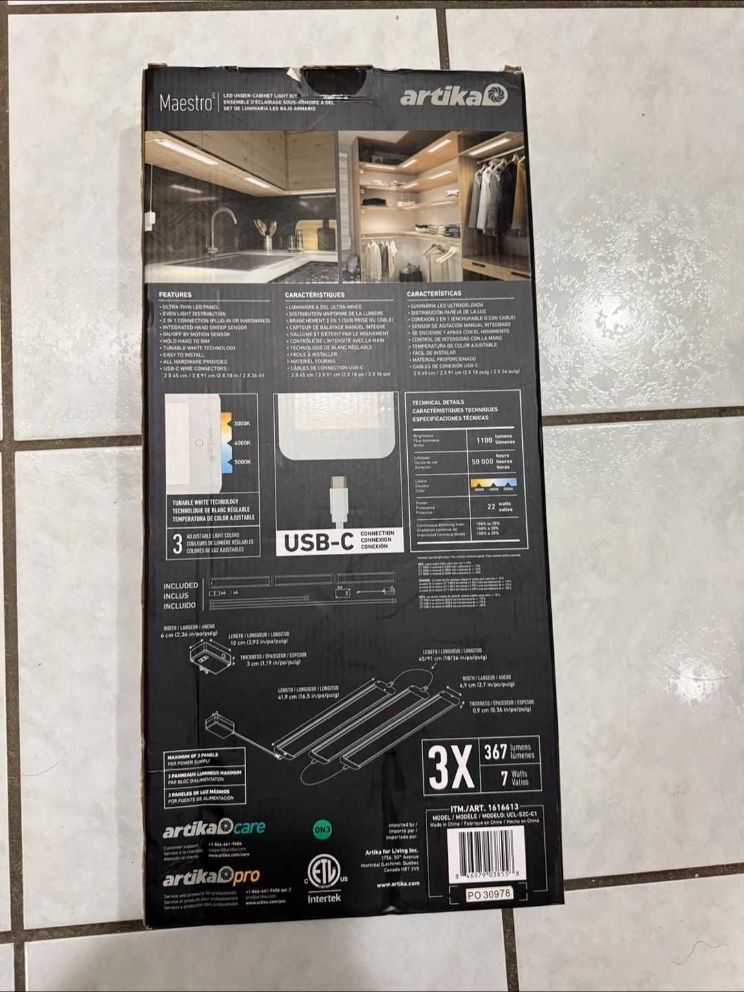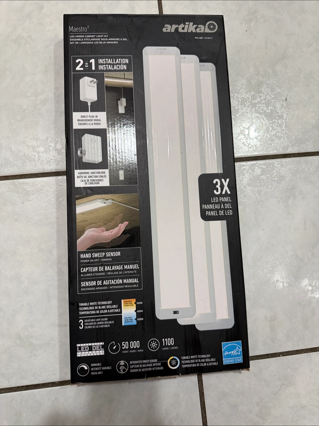 LED under cabinet light kit. Designed for easy installation. Features a hand sweep sensor and tunable white technology. These lights create a warm and inviting atmosphere in your home.