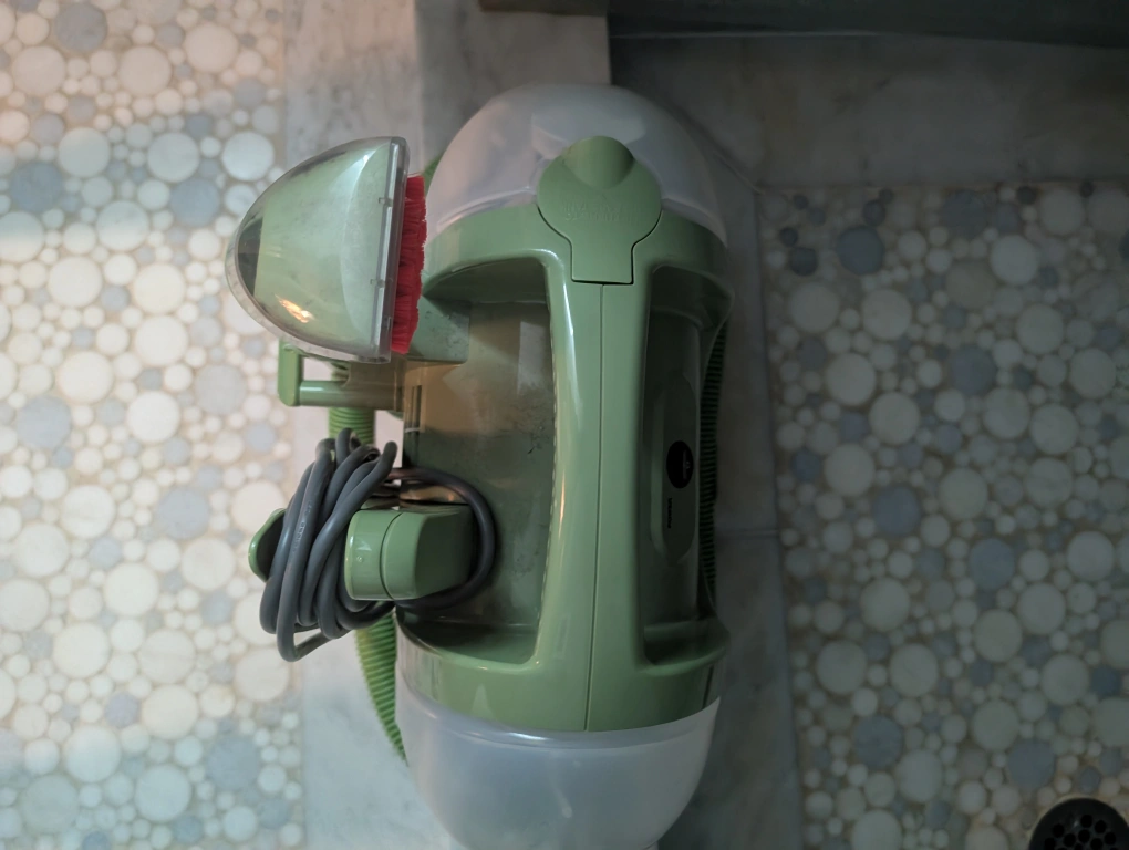 Fantastic Mashine. The Bissell Little Green multi-purpose cleaner. It has a removable water tank. Included is a brush tool attachment. The cord wraps around the back for storage. You can use this to refresh many household areas, offering you a sense of peace and cleanliness.