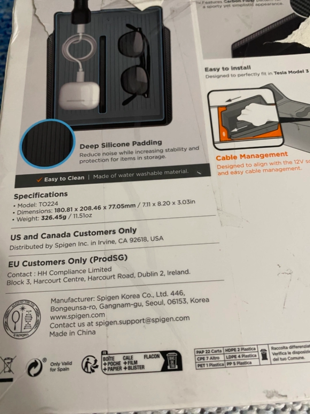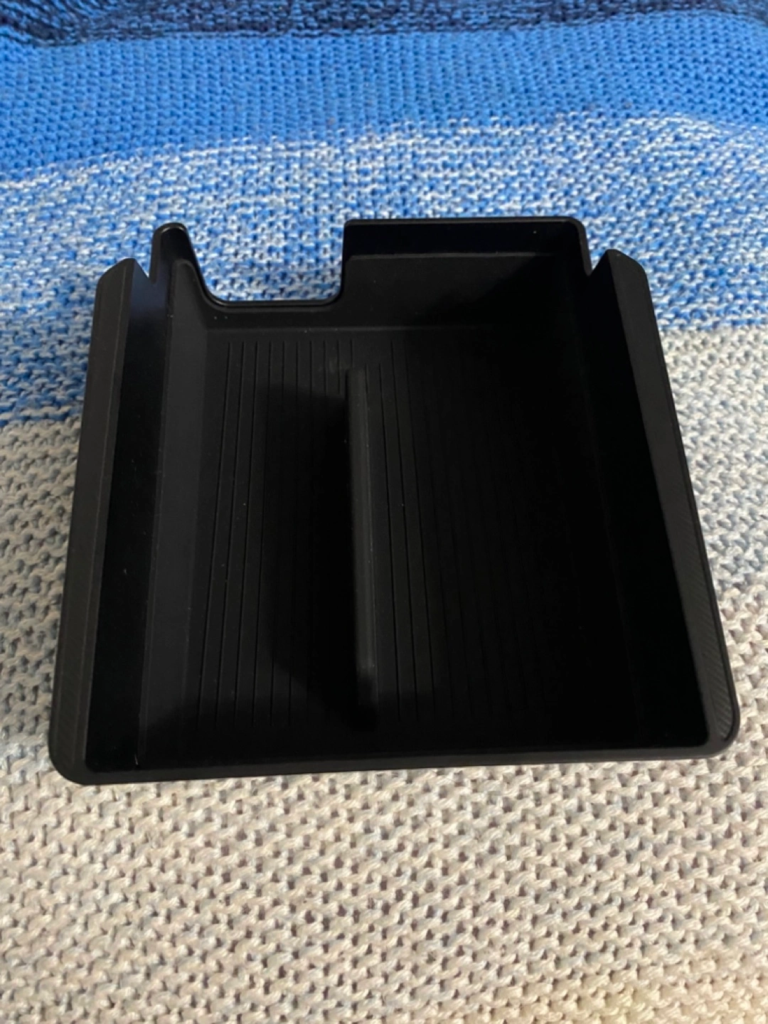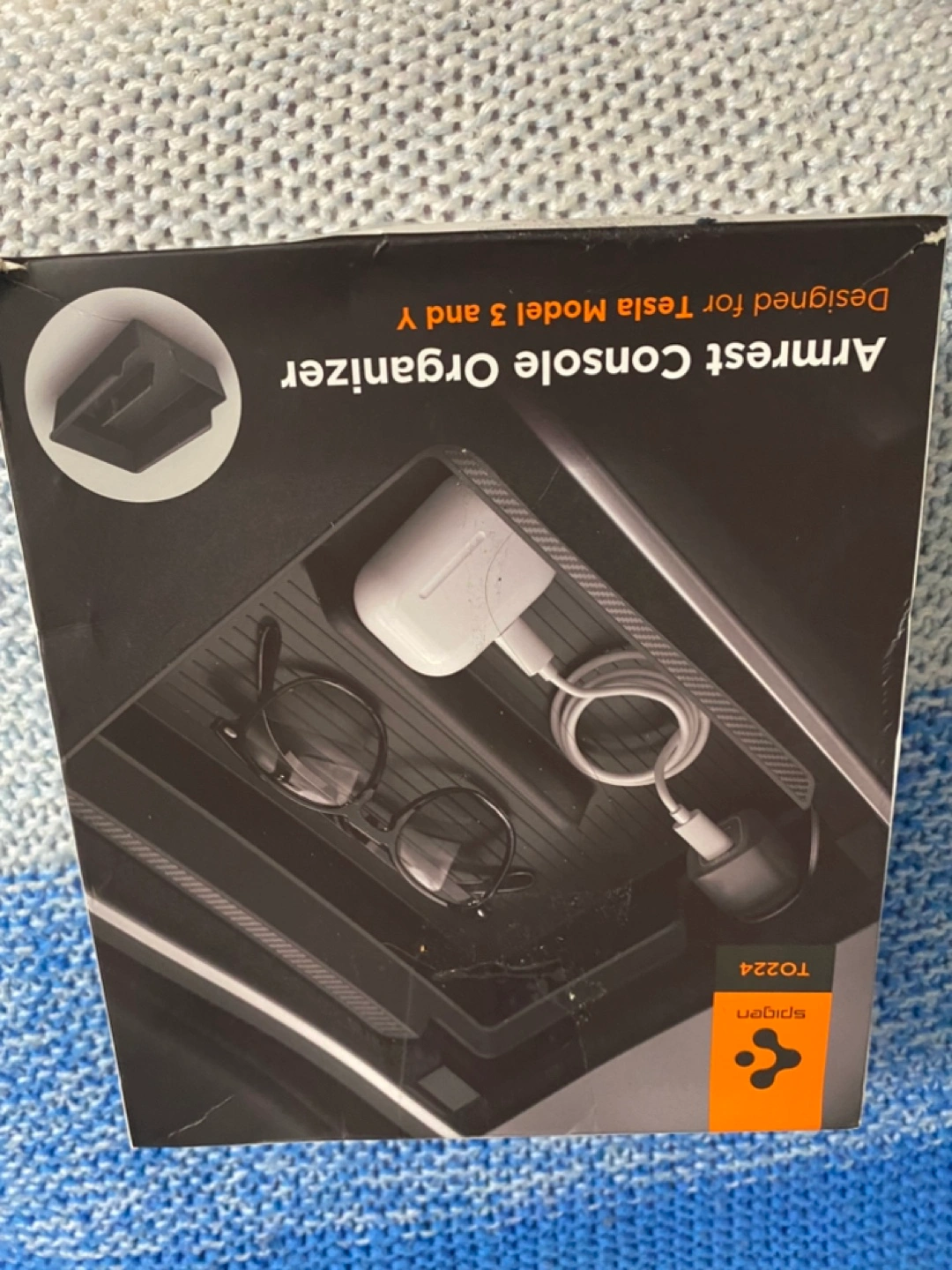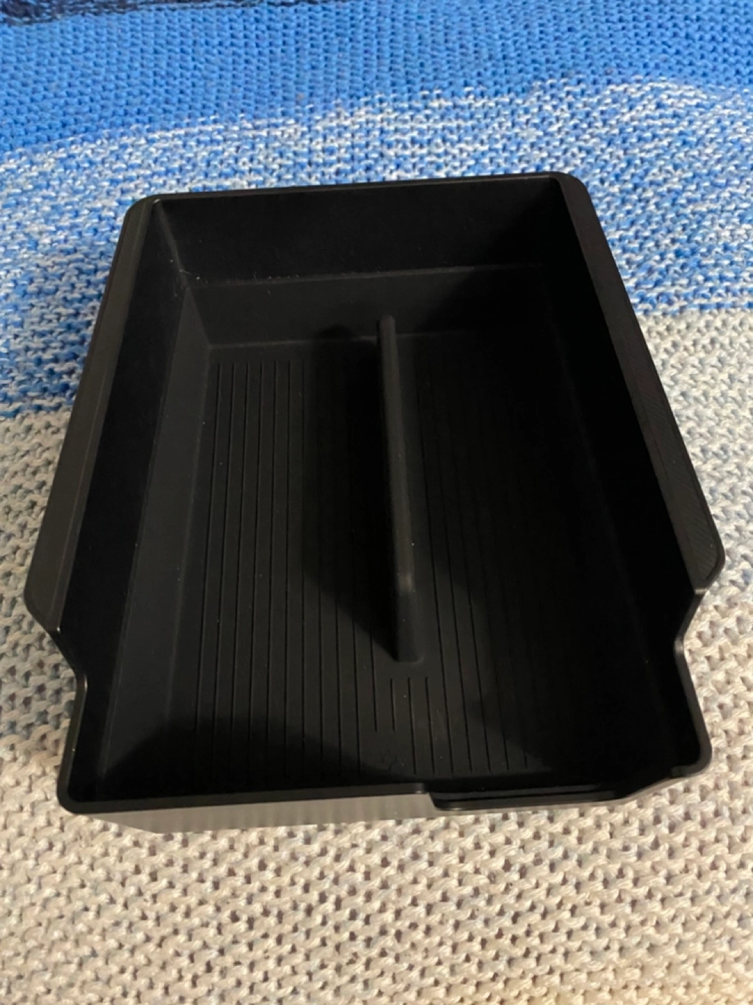 Black armrest console organizer. Designed for the Tesla Model 3 and Y. Made of water-washable material, and reduces noise while increasing stability for your items. You can use it to help keep your car neat and tidy.