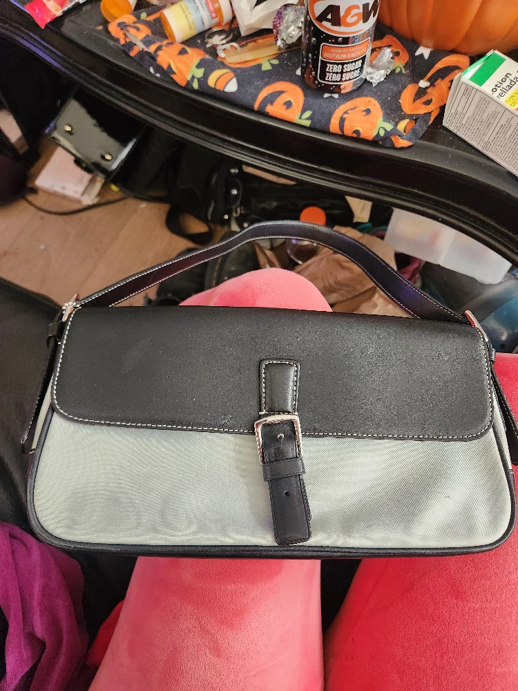 1000+A lovely Rare Coach Vintage Y2K Hampton Flap Purse Shoulder Bag. Features a black flap with a buckle closure. The body of the bag appears to be a light grey colour. Perfect for your everyday essentials, bringing this bag with you will make you feel at ease. * Cash Only * * No E-transfers * * Pickup Only * * Serious Offers Only *