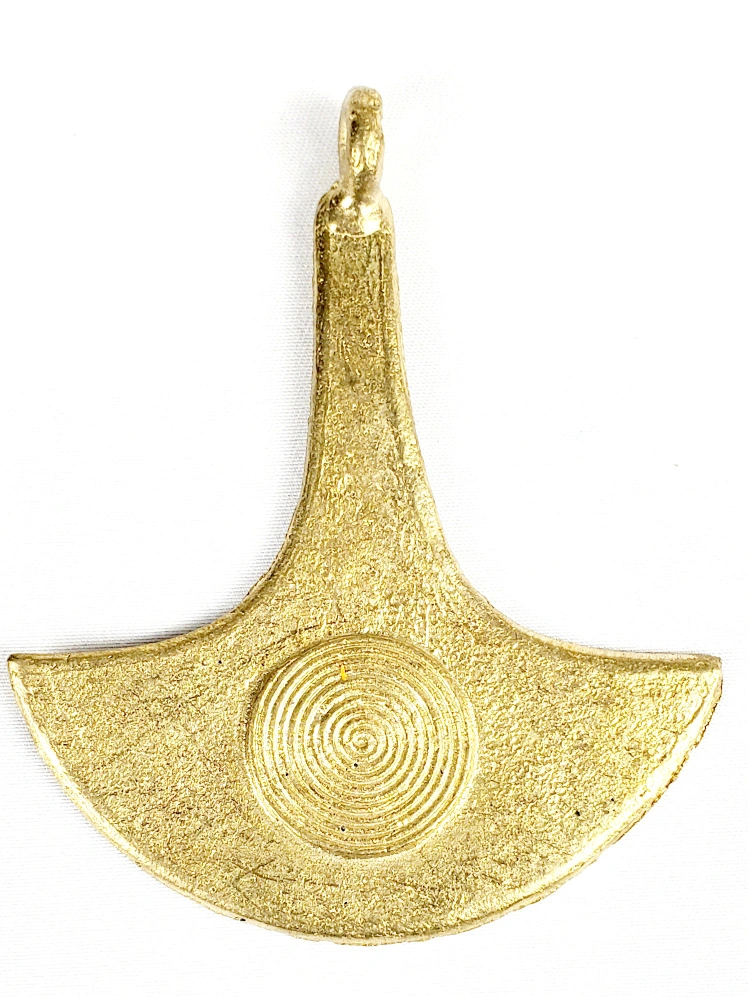 A stunning African Adinkra Pendant in Brass (Adinkrahene). Features a spiral Adinkra symbol . Could make a great centrepiece for a necklace.