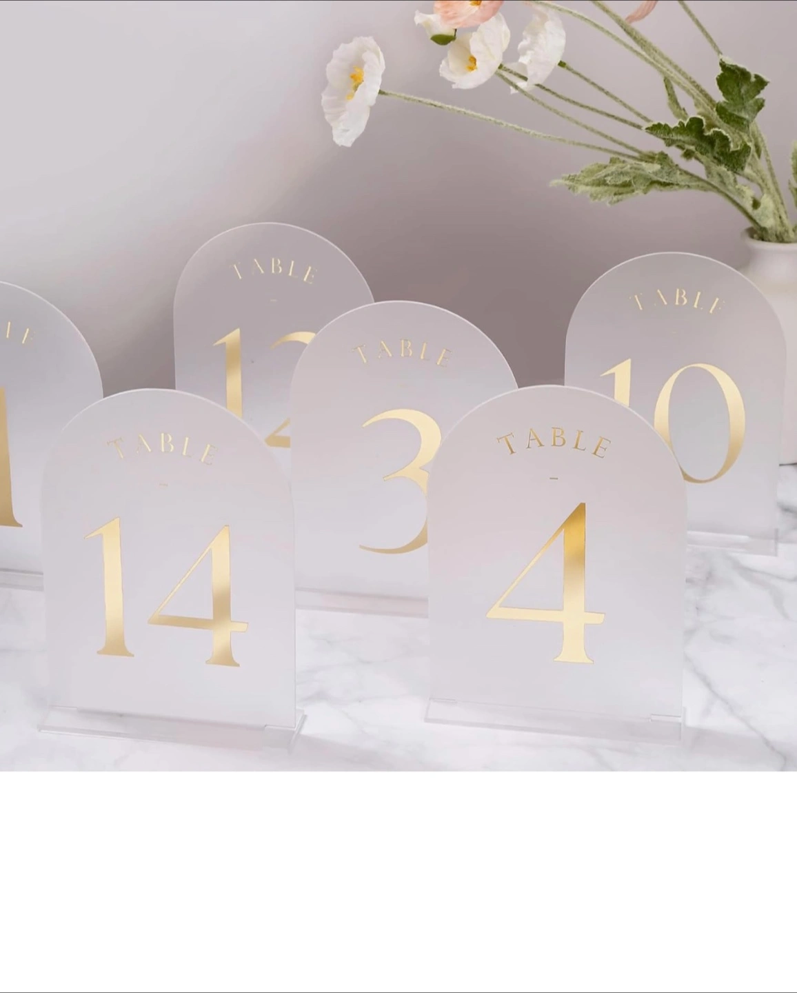 Frosted Arch Wedding Table Numbers 1-20, Gold Foil Printed 5x7 Acrylic Display Signs and Holders, Pack of 20, Perfect for Centerpiece, Reception, Decoration, Party, Anniversary, Event