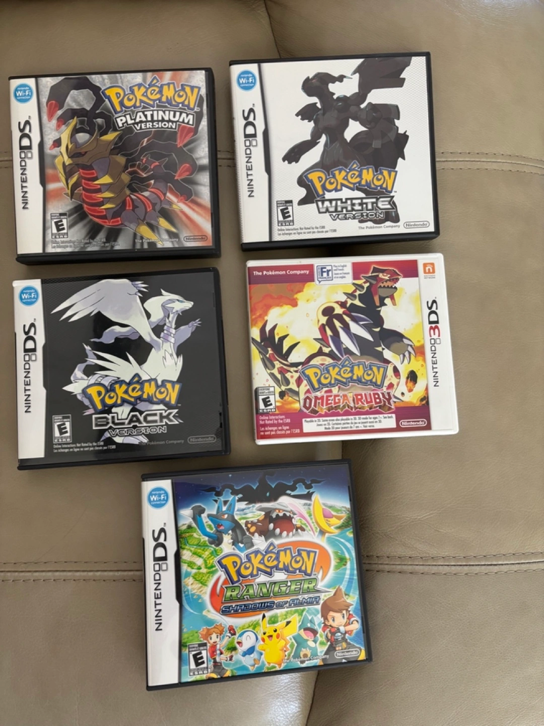 161Games including Pokémon Platinum, White, Black, Omega Ruby, and Ranger Shadows of Almia. Authentic and in excellent condition. White $200 Platinum $200 SOLD Omega $60 SOLD Black $200 Ranger $60