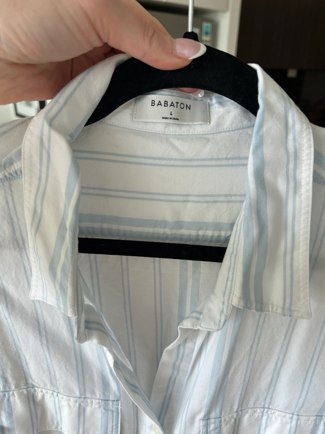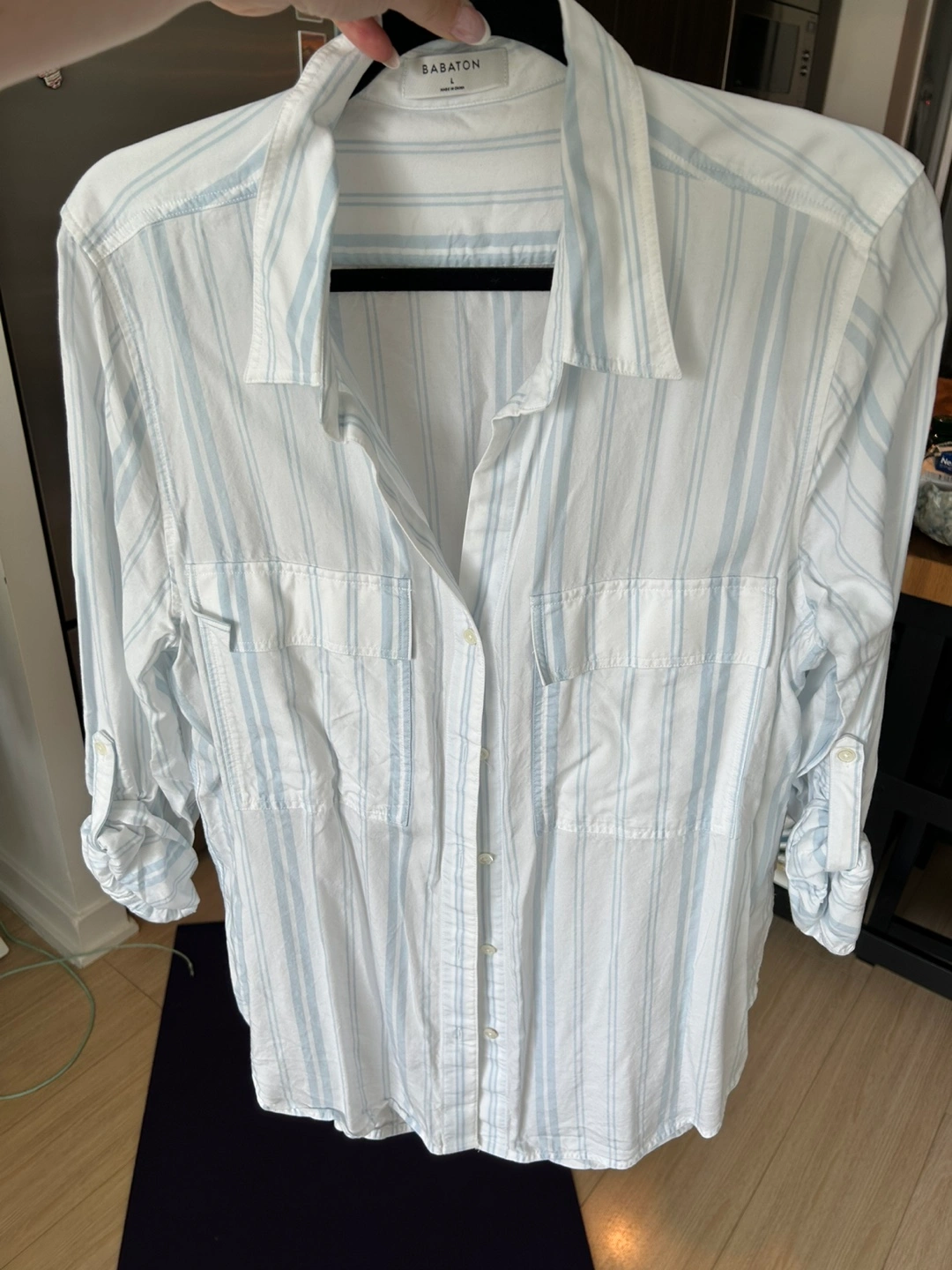 A stylish button-up shirt in a refreshing striped pattern. Babaton Utility Shirt, original price $88 plus tax