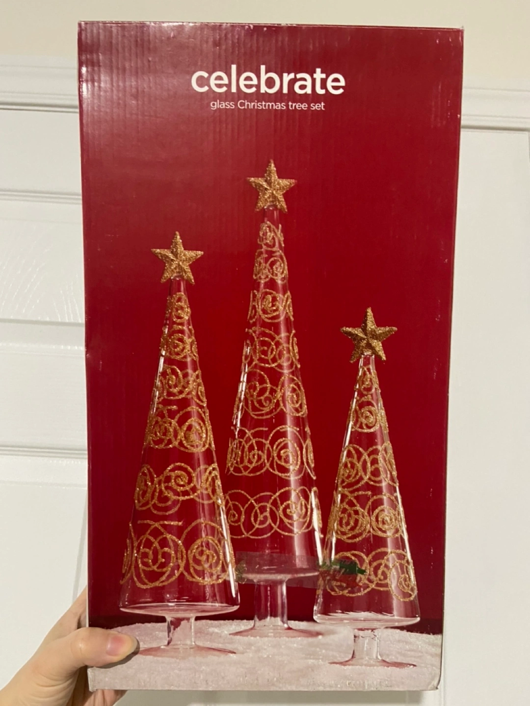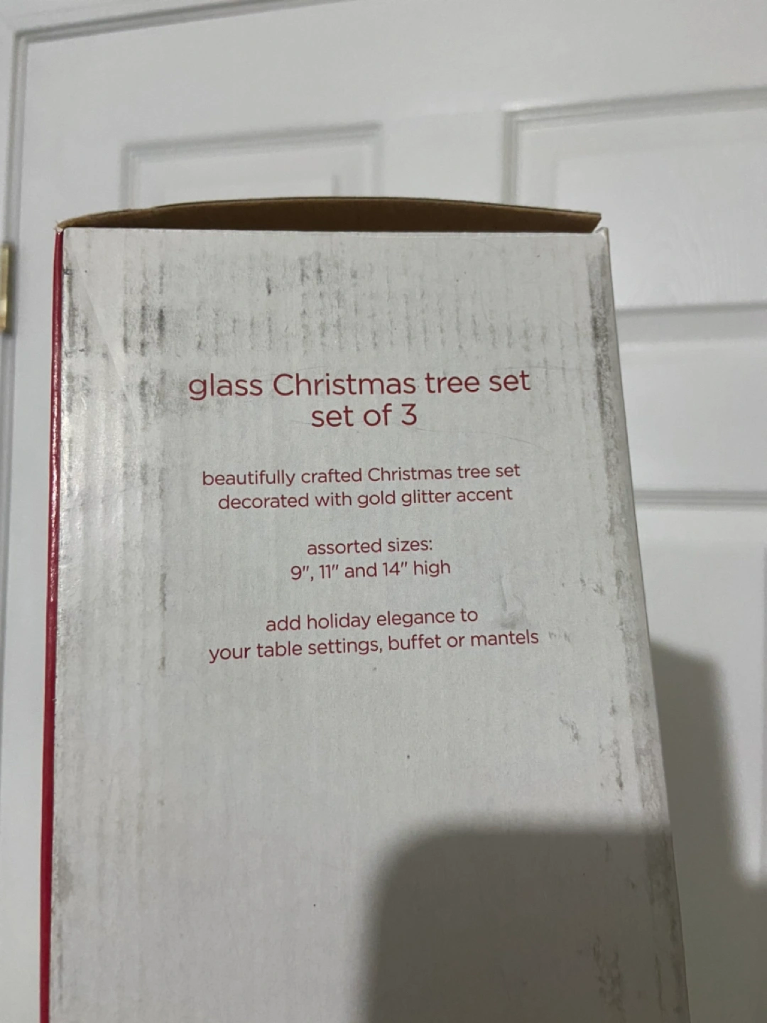 3 Glass Christmas Tree Set Decorations, Diff Sizes