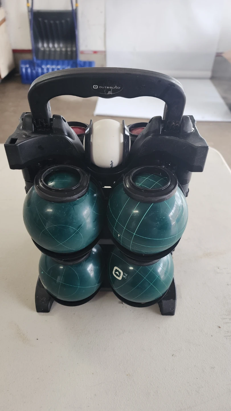 This set includes 8 bocce balls and 1 jack and the stabd to store and carry it all with ease. Four balls are green and four are red. It's perfect for backyard games or taking to the park. Get ready for some friendly competition! Brand new this set retails at Canadian Tire for $80.