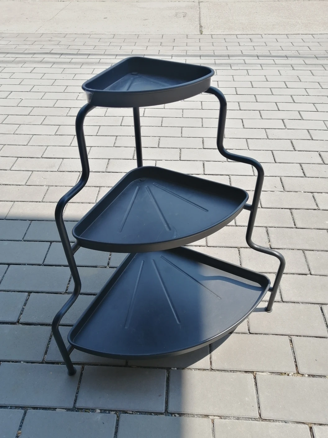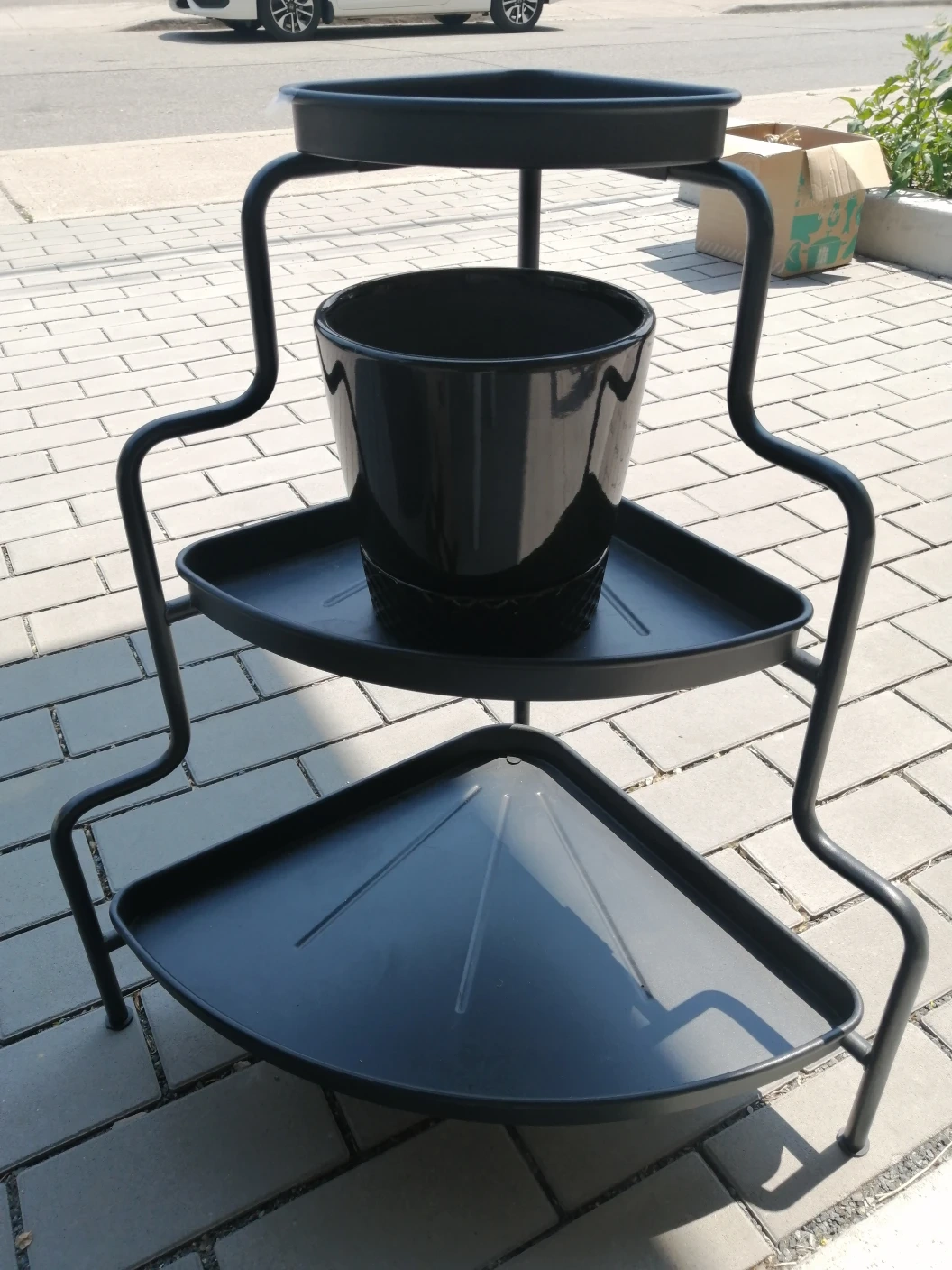 Metal corner plant stand.. It has three triangular shelves, perfect for holding your favourite plants.