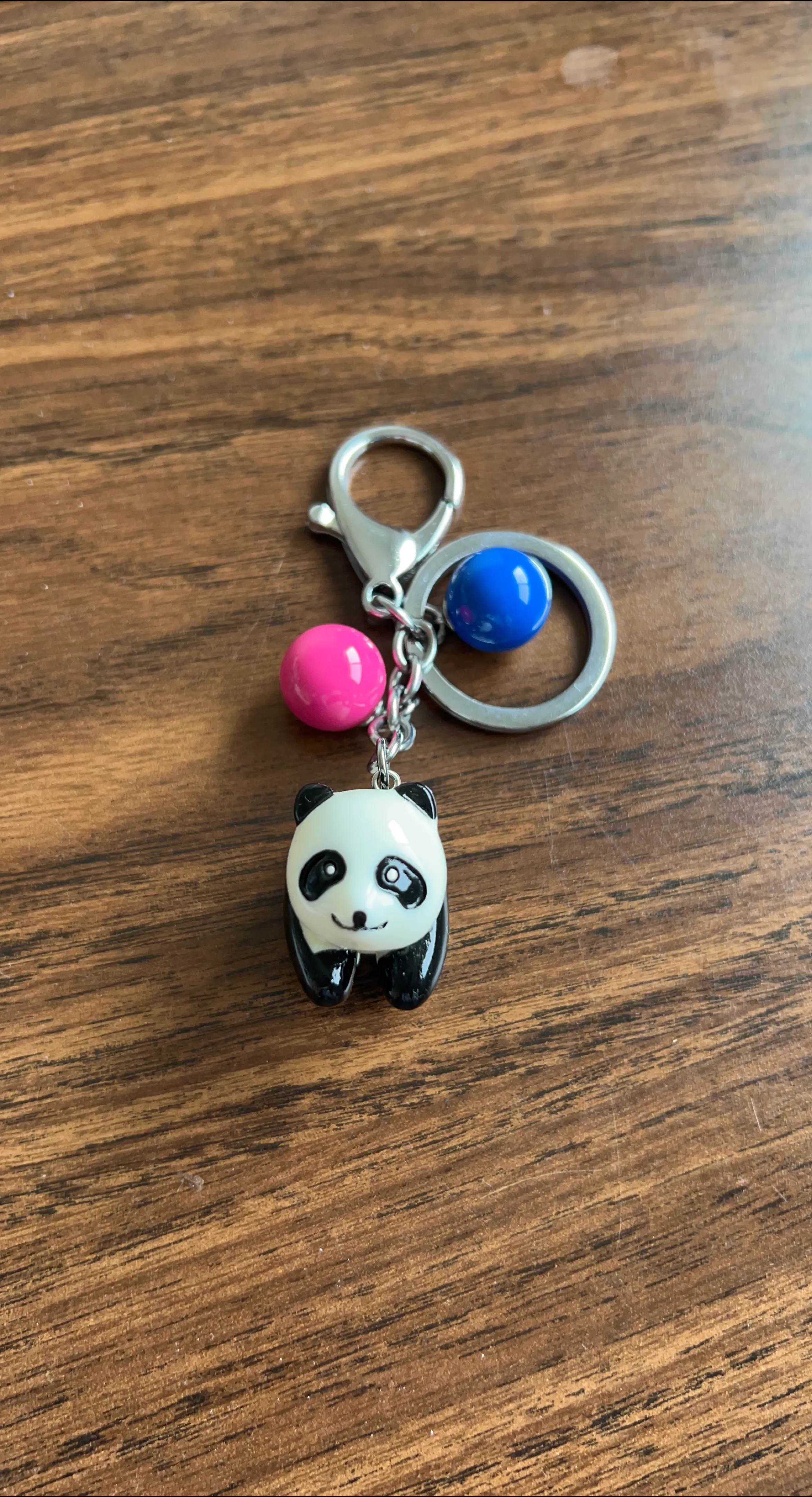 Keychain features a cute panda bear charm. It also contains two colourful beads, attached to a silver keychain clip. A great way to keep your keys organized and easy to find.