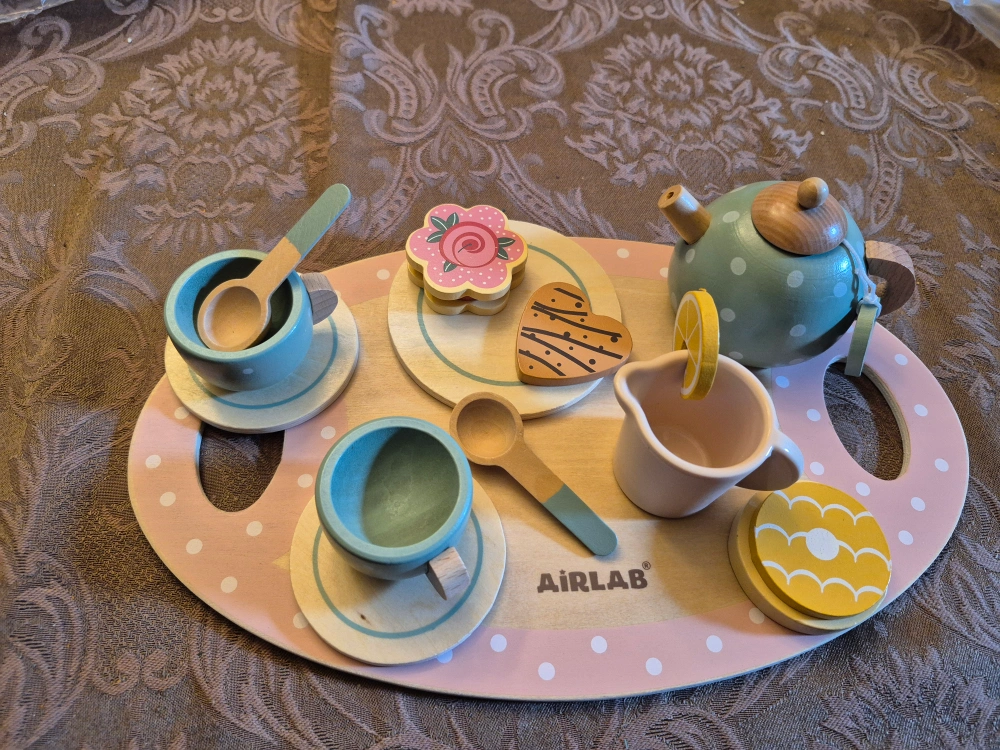 25Brand new never used Includes 1 teapot with lid 2 tea cups 3 plates (2 small and 1 big) 2 spoons 5 different food toys (tea bag, chocolate cookie, lemon tart, lemon slice and sandwich cookie) 1 milk jug 1 wooden tray Thickson and Taunton. Pet and smoke free home. No holds. Fastest pickup. No delivery.