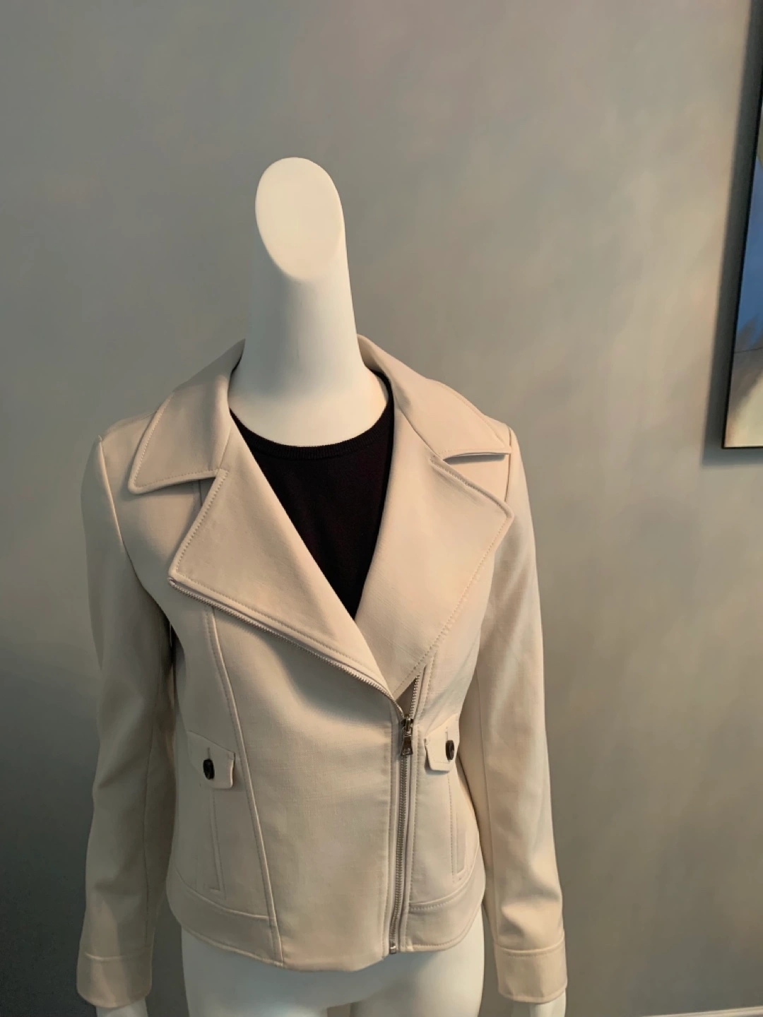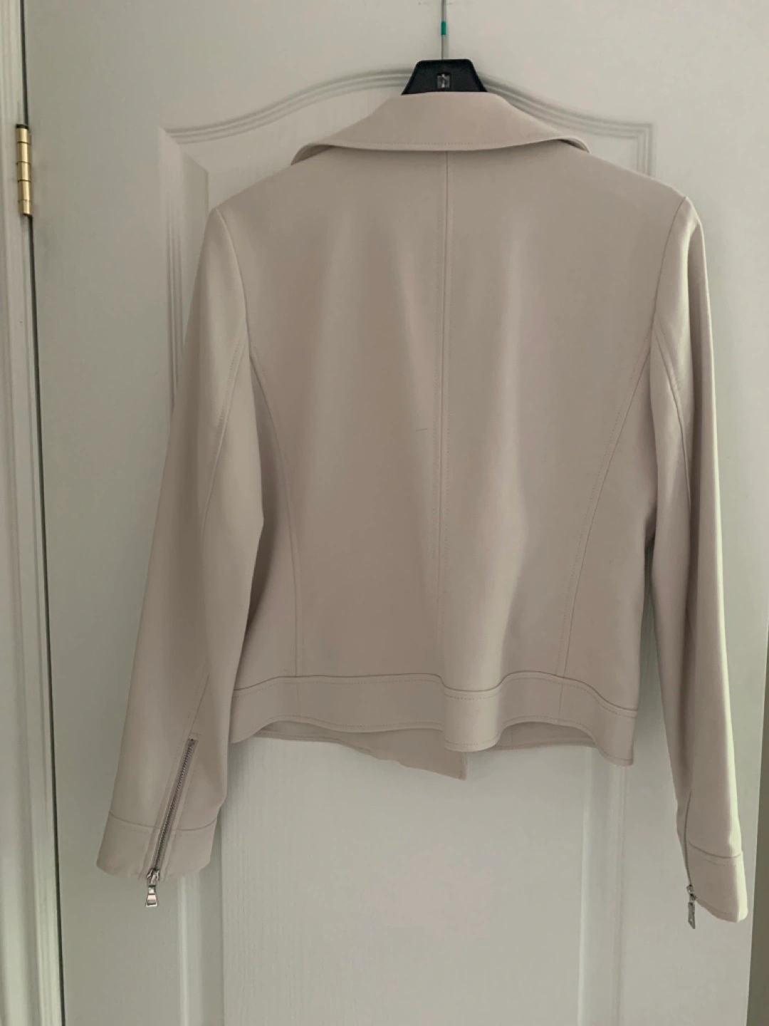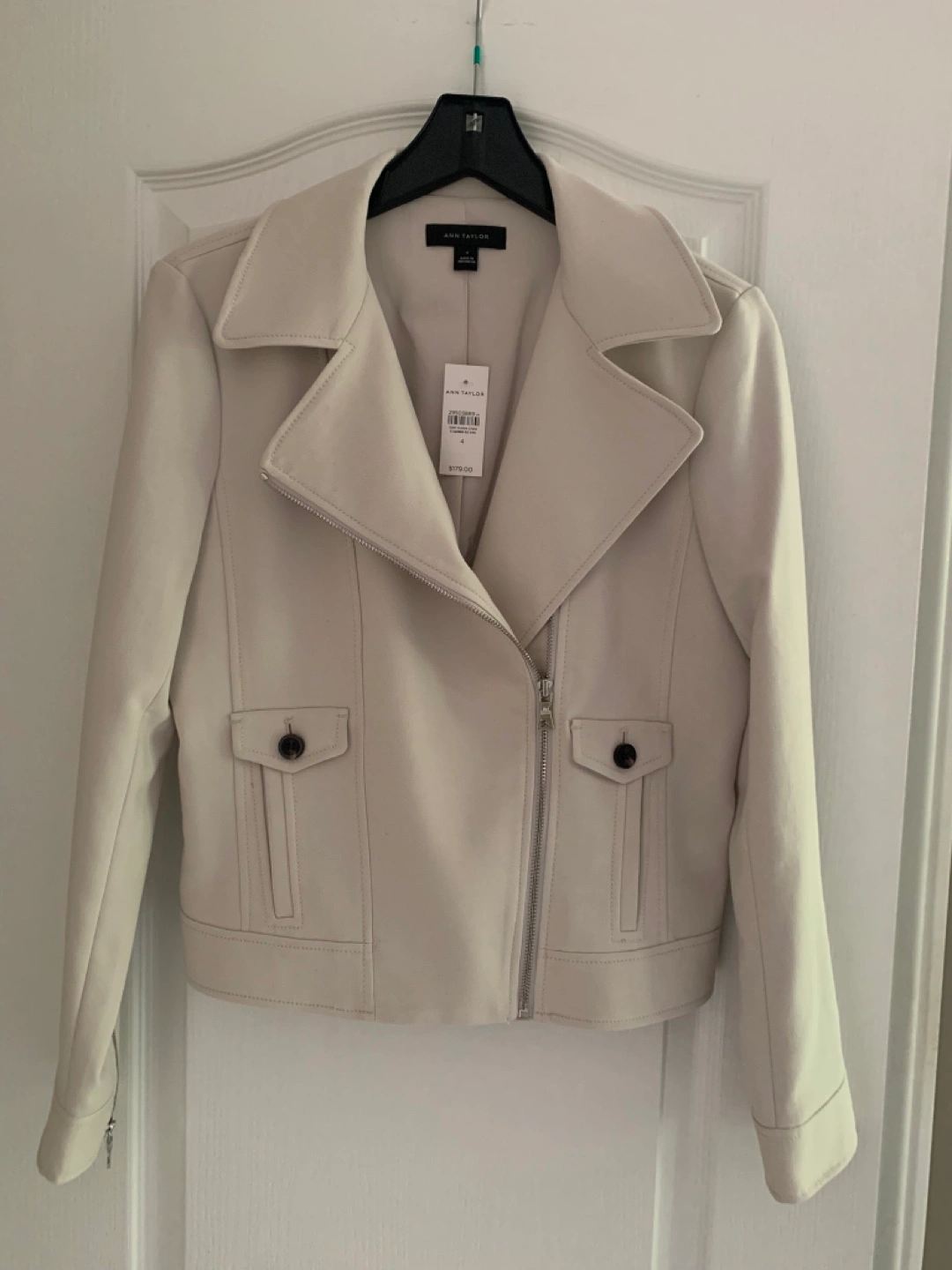 Ann Taylor: Cream, zipper front Moto jacket