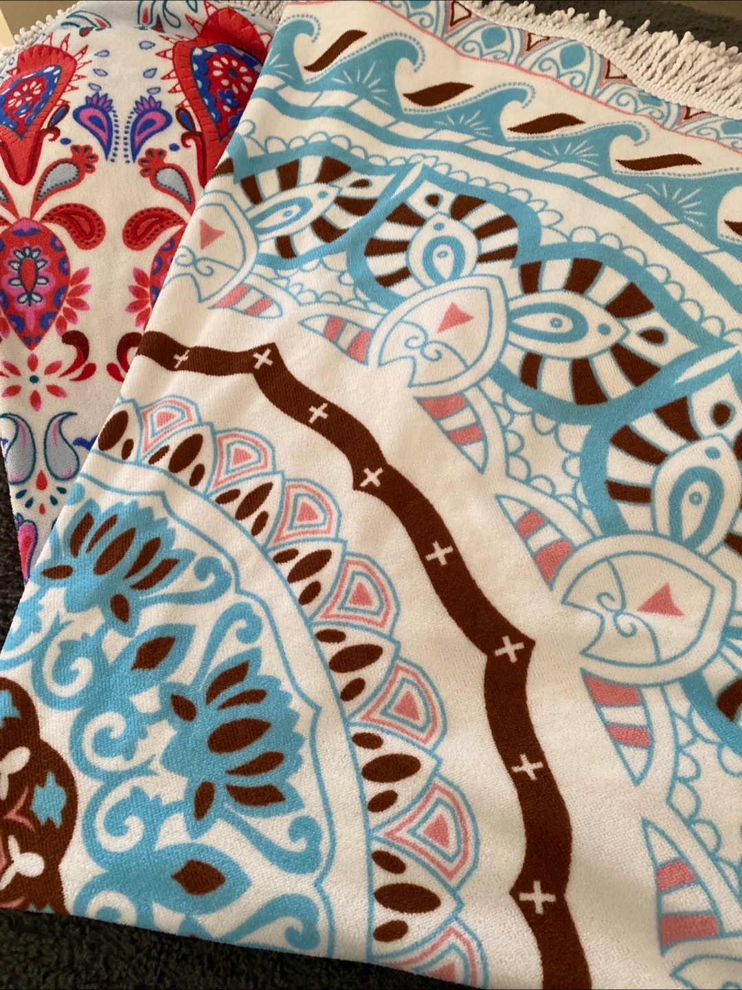 120Brightly coloured microfibre towels/blankets. One red, one blue. Perfect for relaxing at the beach or just getting cozy. Used once.
