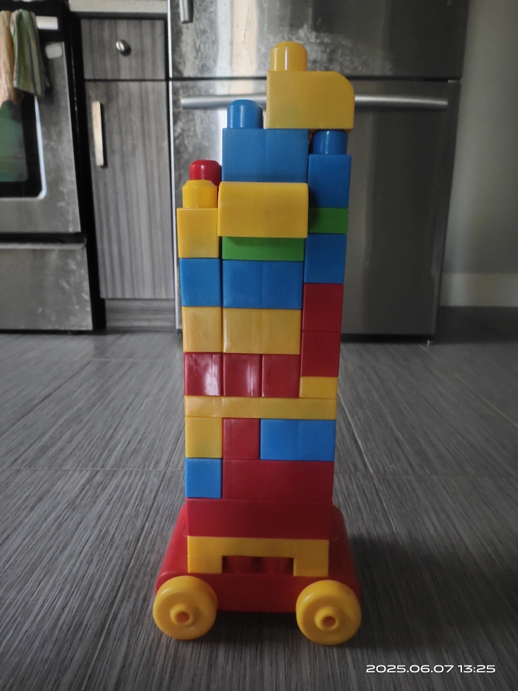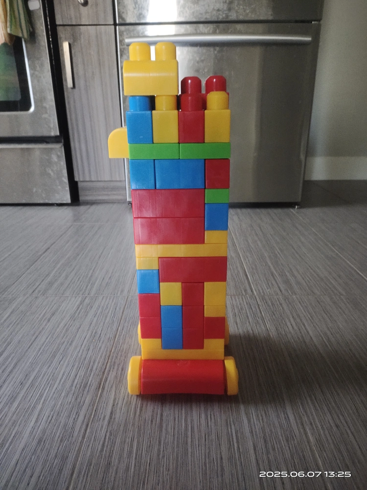 Brightly coloured MEGA BLOCK building blocks. Can be assembled into a tower. Great for keeping your little one entertained. Mega block cover will be provided too.