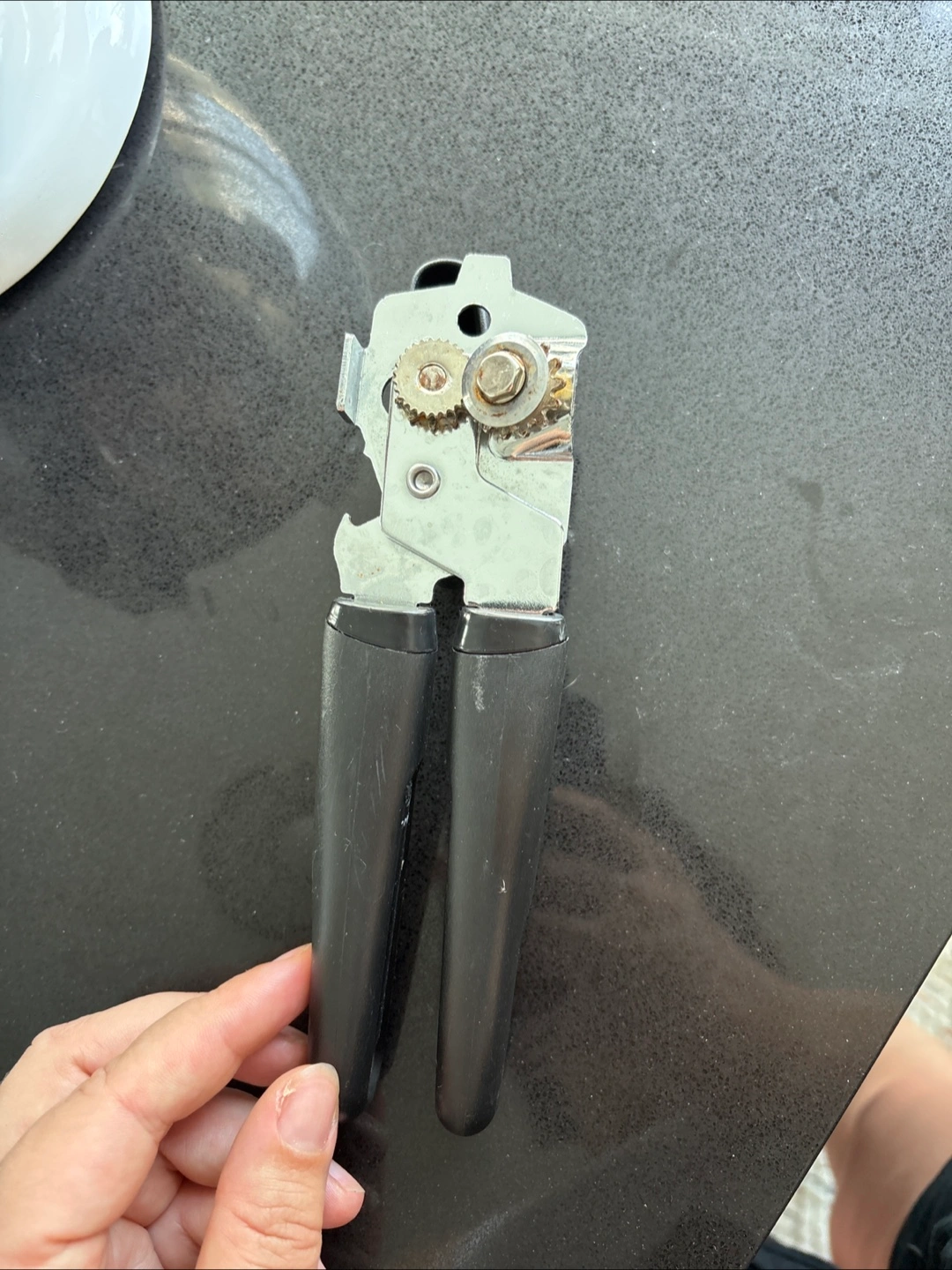 A can opener. Metal and black handles. Can be easily used for opening various types of cans, allowing for easy access to ingredients for your favorite meals. I would also trade for plant cuttings (not pothos)