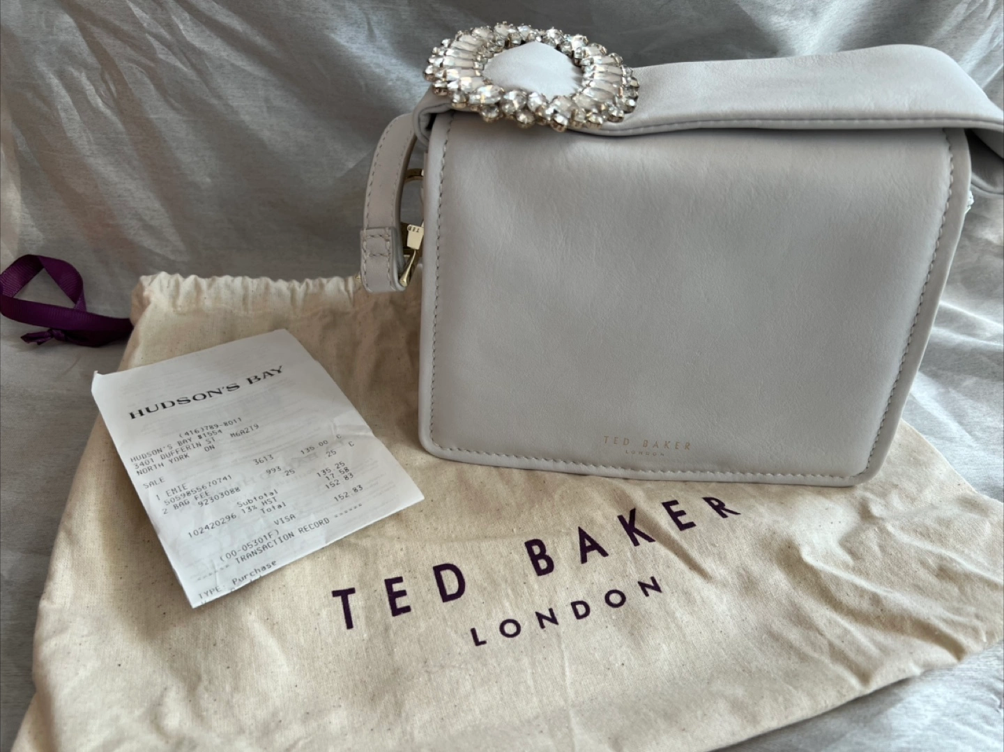 Comes with the original dust bag and receipt from Hudson’s Bay. Bought on sale at half-off, but retailed for $250+ brand new!