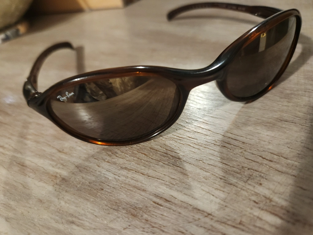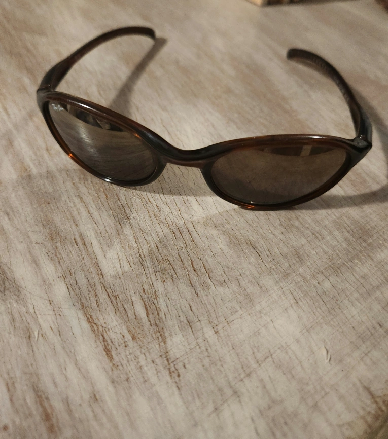 Sunglasses with a brown frame. Curved design. Perfect for your next sunny adventure, or relaxing by the water. Vintage