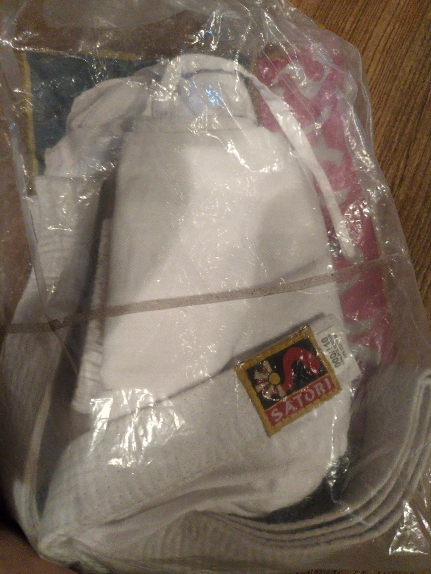 A white Karate uniform. A great purchase to help you on your journey to zen. This is ideal for children around 4 years old. Includes white belt. The back is blank (no school logo).