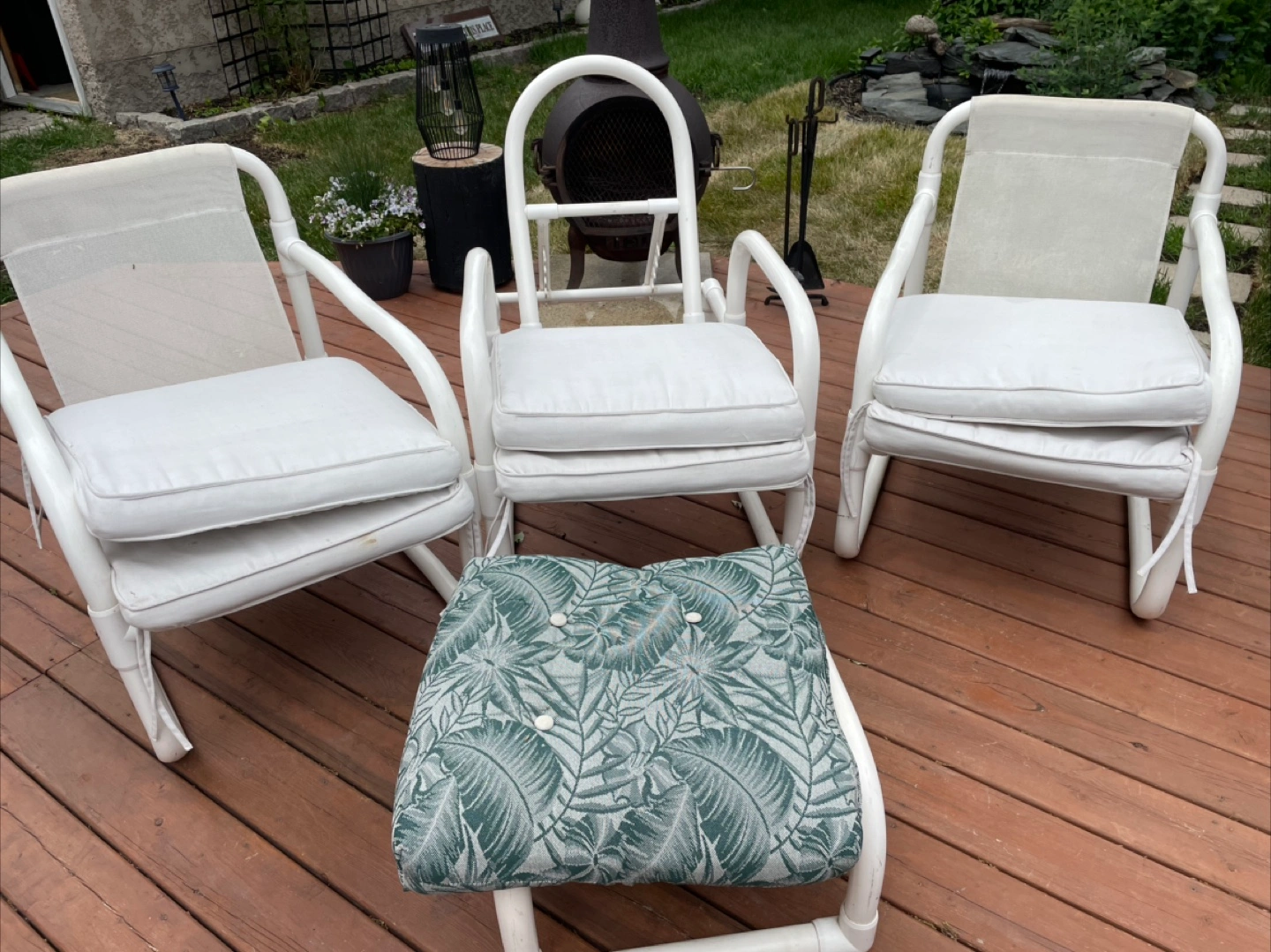 Buy & SellWhite Outdoor Chairs with OttomanWhite Outdoor Chairs with Ottoman$125PVC furniture very comfortable cushions included 1 reclining chair 2 armchairs PICKUP ST VITAL You can unwind and enjoy some sunshine in these chairs.ConditionLike newWHERE TO MEETCheck LocationView MapSELLERverifiedKimElm Park973 reviews0 chats·0 favorites·29 viewsSEND CHAT TO SELLERHi Kim! I’m interested in your listing.Hi Kim! I’m interested in your listing.Get the Karrot app to chatSign In to chat