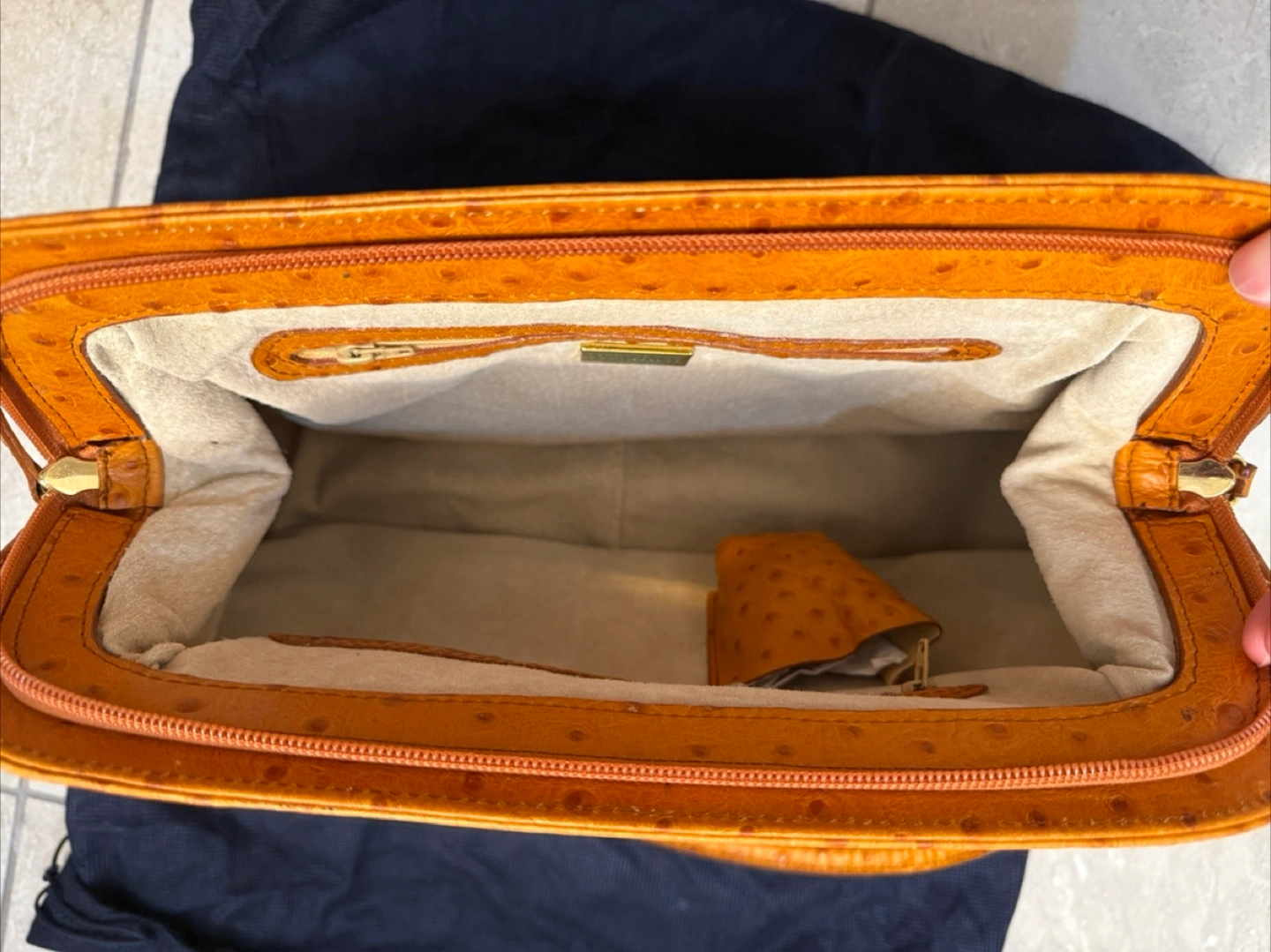 Francesco Rogani Italy Ostrich-Embossed Leather Purse Handbag