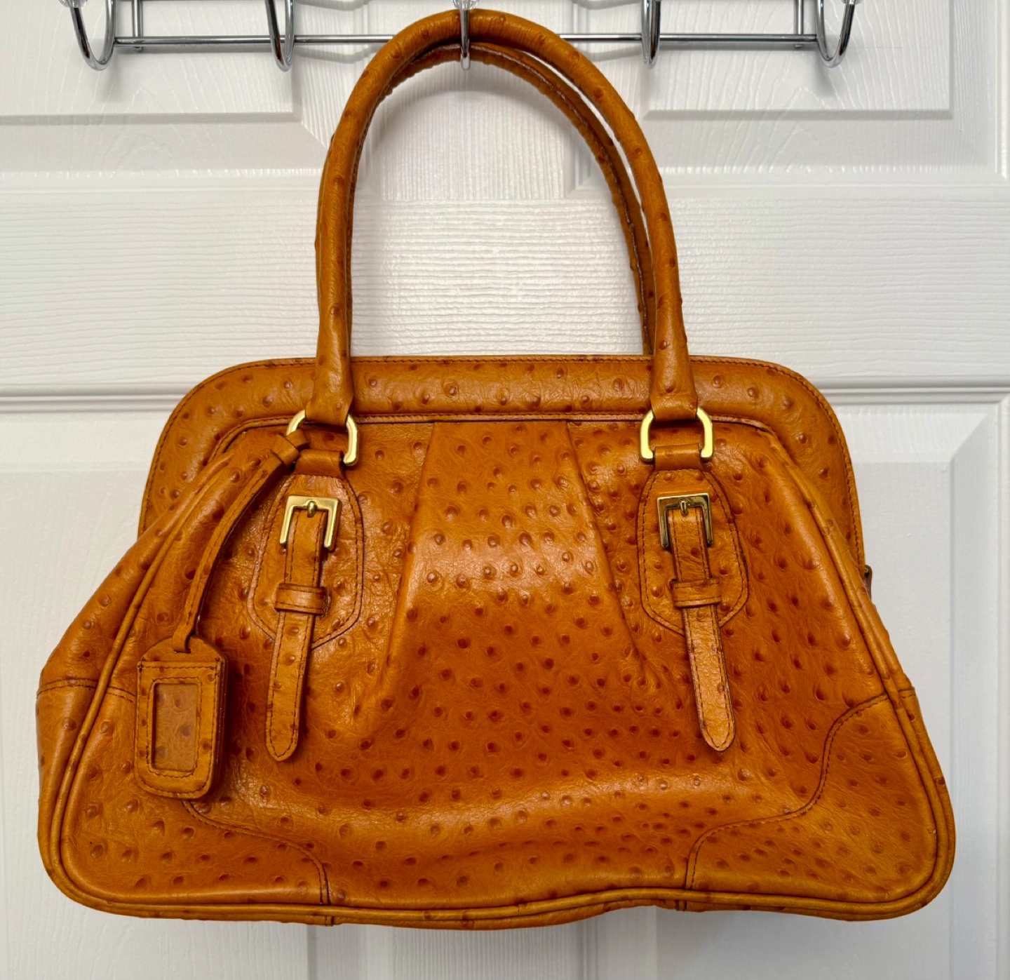 Authentic Francesco Rogani Roma Italy handbag, crafted in Rome from full-grain leather with an ostrich-embossed texture.