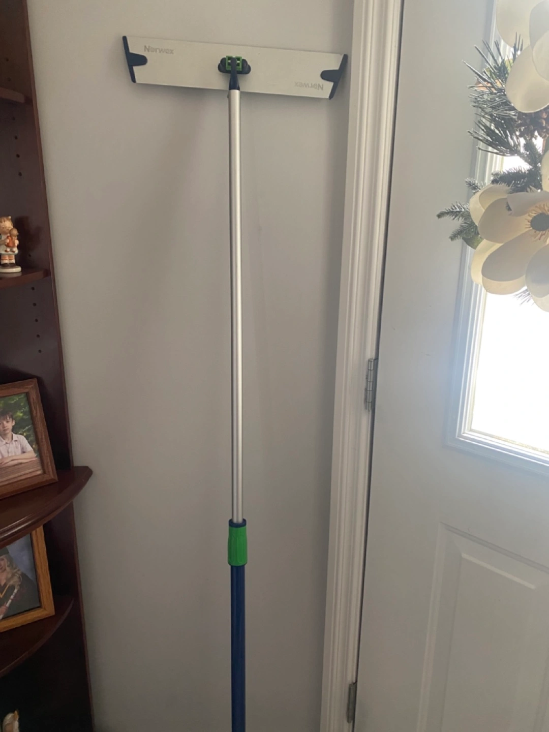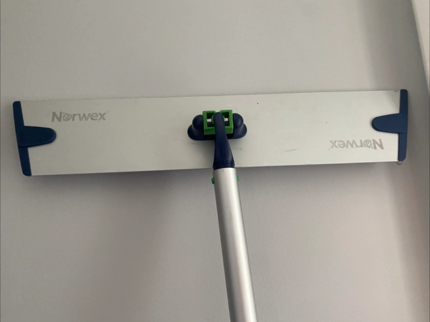 This Norwex window cleaning system makes cleaning windows easy and enjoyable. The system includes a handle, cleaning head, and multiple cleaning cloths. The cleaning head features a rubber squeegee. The handle is adjustable in length, and has a comfortable grip.